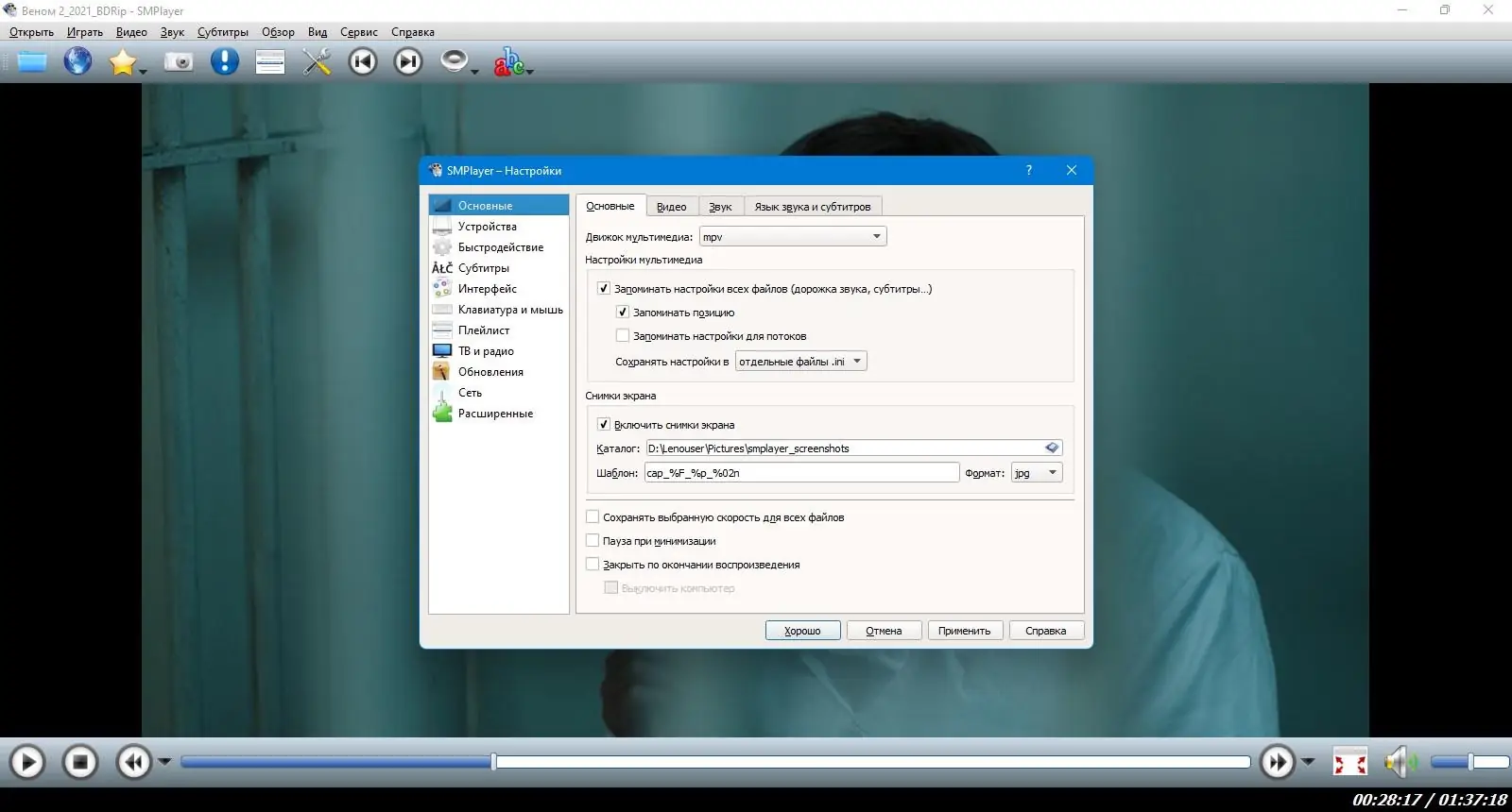 SMPlayer продолжает воспроизведение с того места, где пользователь остановился, сохраняя все настройки: громкость, выбранную звуковую дорожку, субтитры и их синхронизацию.