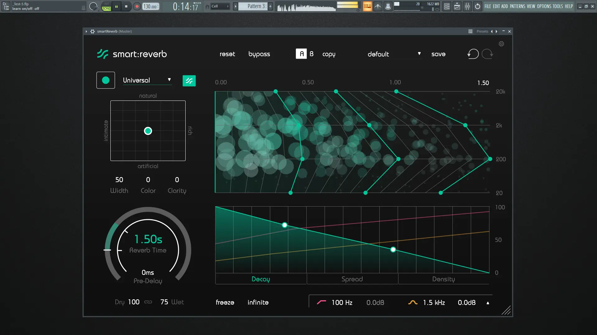 Благодаря технологии smart eq, плагин корректирует частотный баланс реверберации, предотвращая конфликты с другими элементами микса.