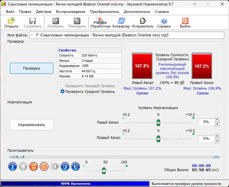- Точная нормализация с использованием RMS и пикового анализа