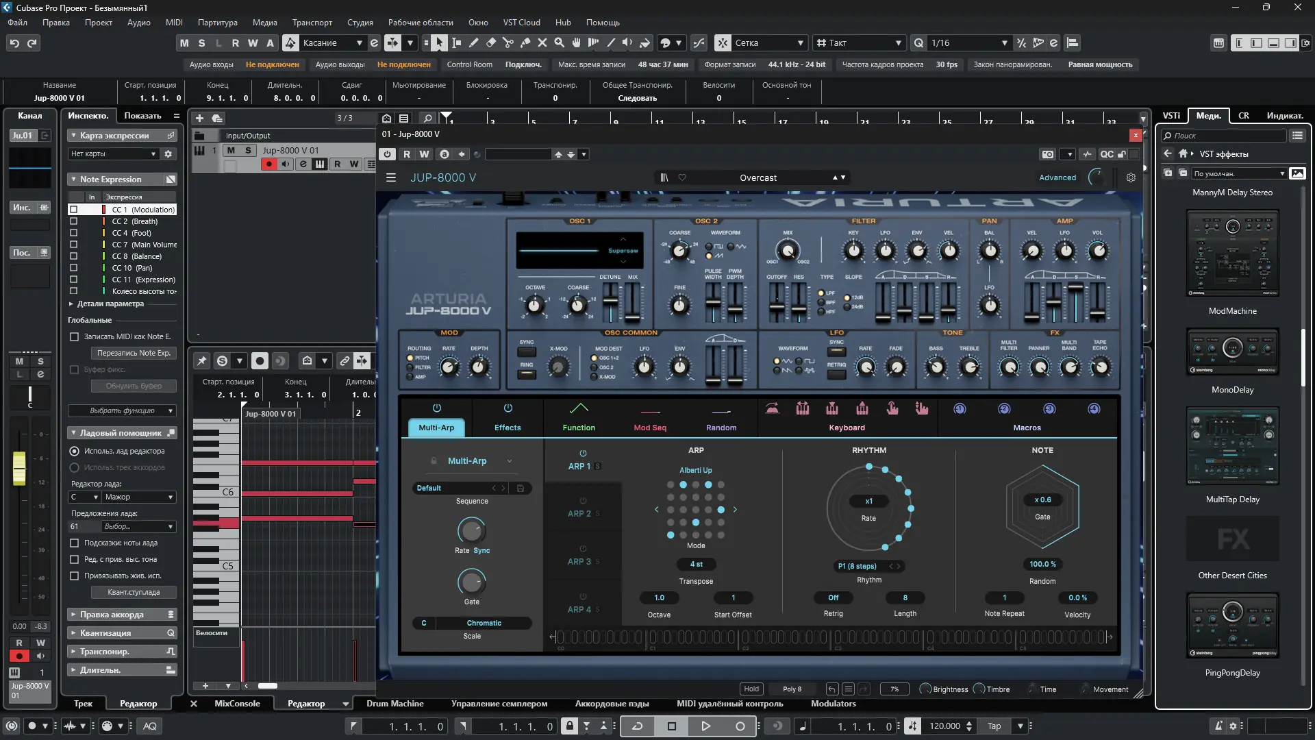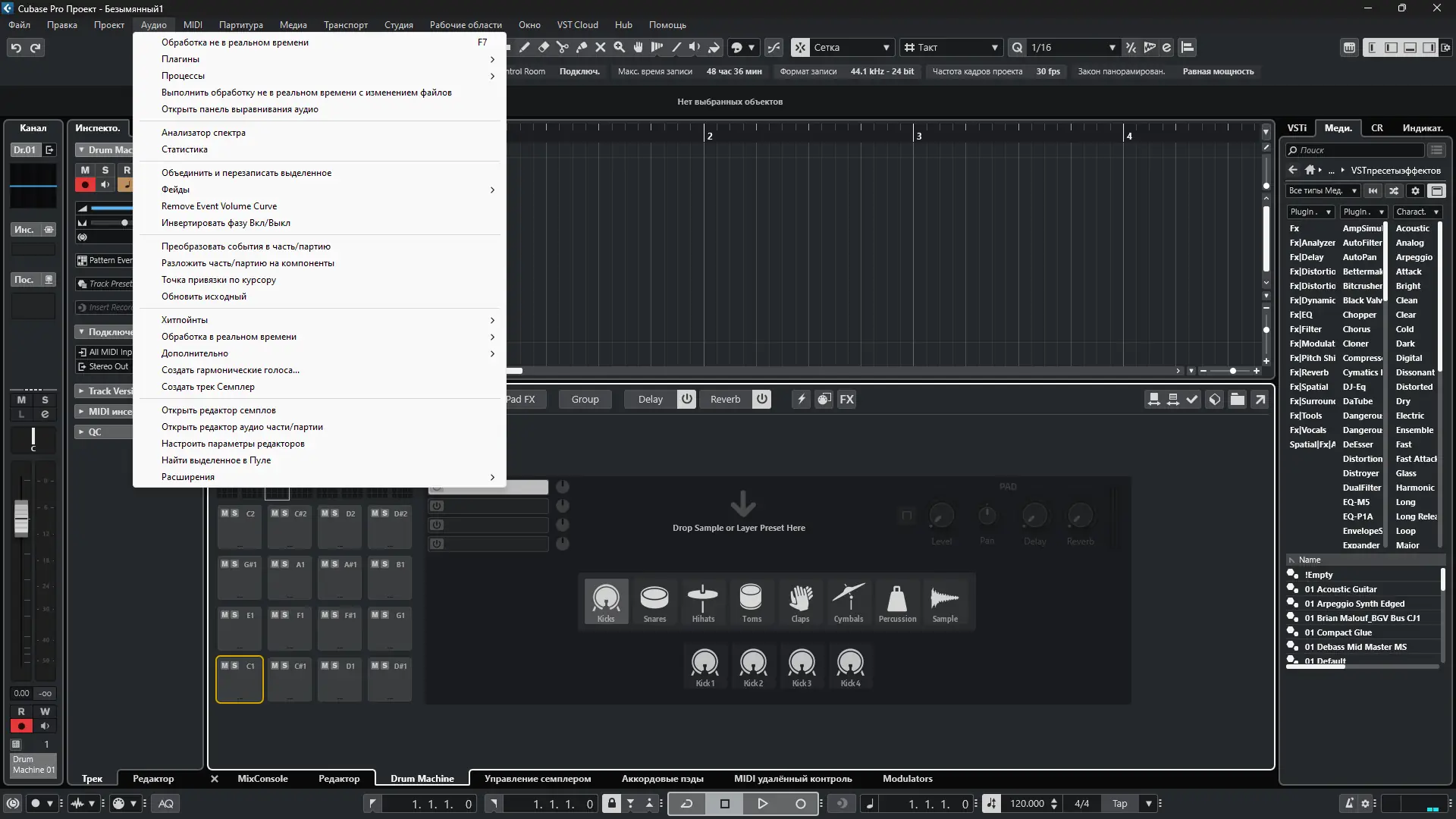 - Интеграция с VST-инструментами и эффектами для расширения функциональности