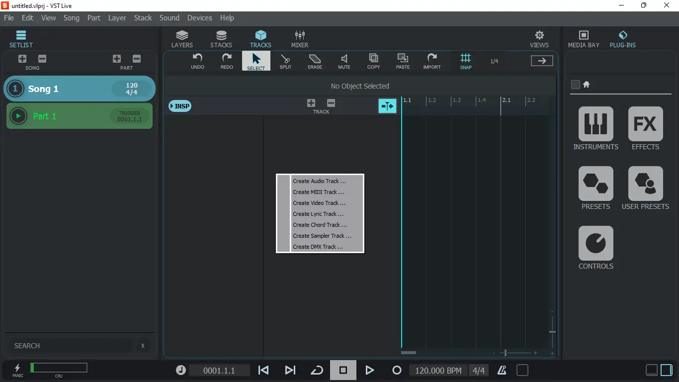 - Поддержка виртуальных инструментов и MIDI-треков для управления световыми приборами через протокол DMX