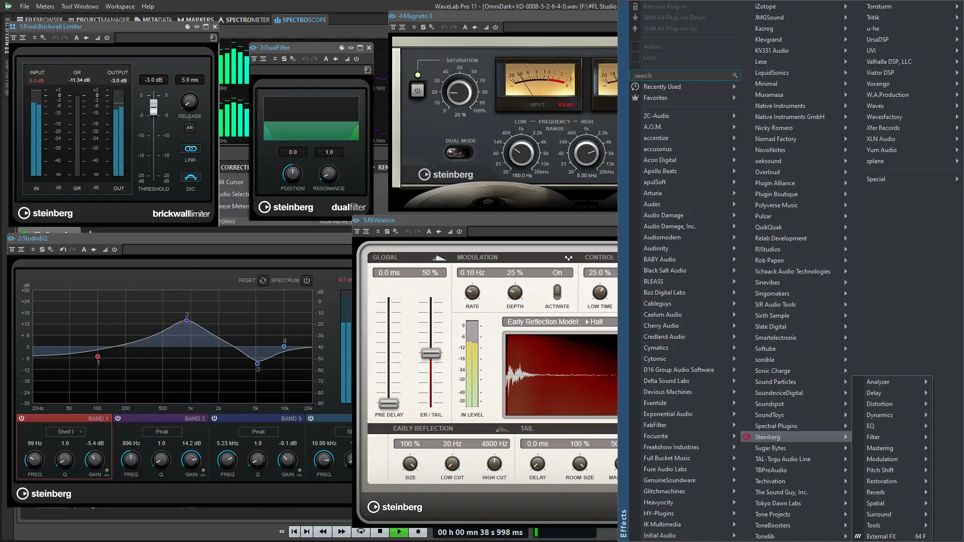 WaveLab уже более 25 лет остаётся стандартом в области аудиообработки, особенно в сфере мастеринга. Его используют ведущие студии мира благодаря стабильности, точности и прозрачности звучания. Программа поддерживает внутреннюю 64-битную обработку с частотой до 384 кГц, что делает её идеальной для работы с аудио высокого разрешения. Архитектура позволяет интегрировать внешние VST3-эффекты и обрабатывать огромные проекты с тысячами дорожек без потери производительности.