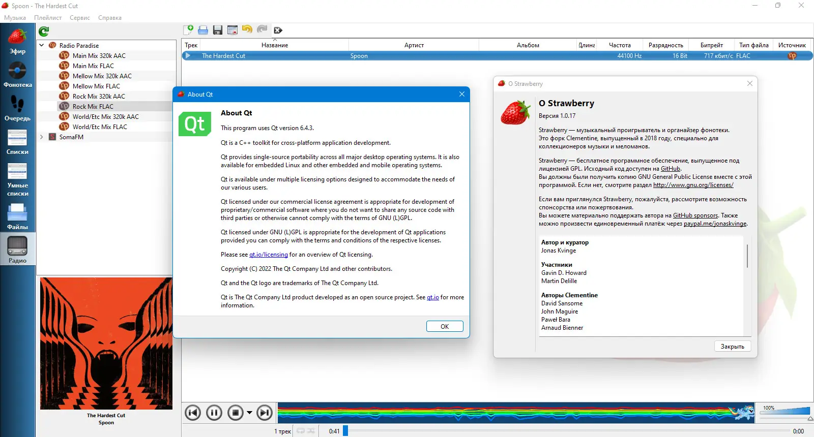 Strawberry — это музыкальный плеер, ориентированный на меломанов и коллекционеров, которые ценят чистый звук и удобную организацию своих аудиозаписей. Программа позволяет не только слушать музыку с локальных дисков, но и управлять большими библиотеками, импортировать аудио-CD, а также подключаться к потоковым сервисам. Она поддерживает множество форматов, включая FLAC, WAV, MP3, Opus, WavPack и другие, что делает её универсальным решением для разных типов аудиофайлов.