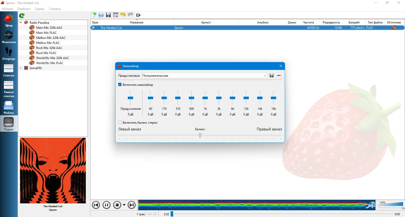 Strawberry предлагает широкий функционал, но, как и любой софт, имеет свои сильные и слабые стороны. Программа активно развивается, сохраняя при этом стабильность и высокую совместимость с разными аудиосистемами. Она подойдёт как начинающим пользователям, так и тем, кто работает с профессиональными аудиоколлекциями. Однако из-за обилия функций новичкам может потребоваться время на освоение интерфейса.