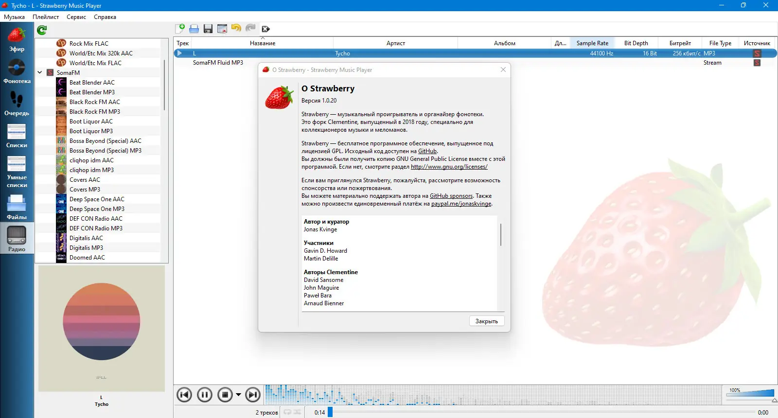 Strawberry — это музыкальный проигрыватель и мощный менеджер аудиоколлекций, созданный для ценителей качественного звука и систематизации музыки. Программа является продолжением развития Clementine и предлагает расширенные возможности для прослушивания, сортировки и редактирования музыкальных файлов. Поддержка множества форматов, интеграция с онлайн-сервисами и гибкая настройка делают её идеальным выбором для меломанов.