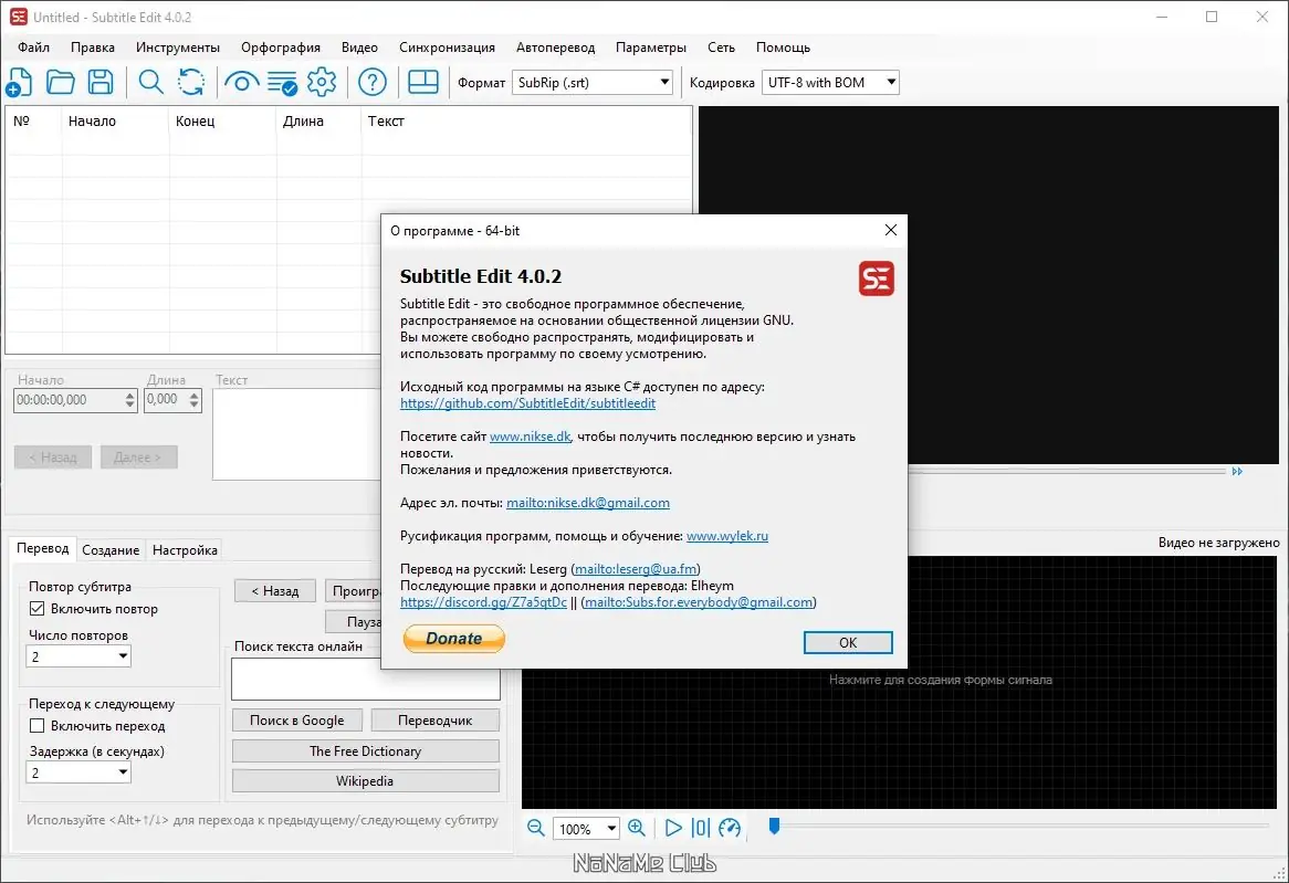 Описание Subtitle Edit
