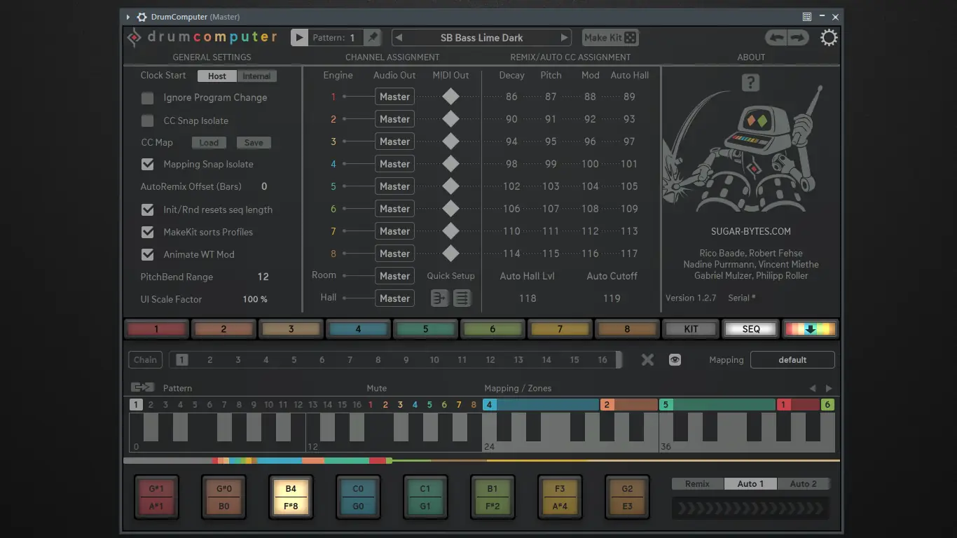 Работа с DrumComputer начинается с выбора движка и настройки его основных параметров — формы волны, резонанса и тональности. Далее можно использовать встроенные инструменты модуляции, чтобы придать звуку динамику и движение. Секвенсор позволяет создавать сложные паттерны с помощью встроенных функций вероятности, задержки шагов и ручного ввода. Ключевые зоны позволяют назначать элементы управления таким образом, чтобы управлять Rolls, изменением высоты тона или модуляцией в реальном времени. Перетаскивание MIDI-файлов ускоряет процесс композиции, а возможность экспорта на отдельные выходы упрощает постобработку в DAW.