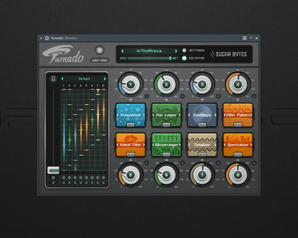 Sugar Bytes Turnado — это мощный аудио-манипулятор, сочетающий 24 эффекта в 8 слотах с интуитивным управлением в реальном времени. Программа предлагает динамическую маршрутизацию сигнала, режим Dictator для контроля всех эффектов одним фейдером и поддержку VST, что делает её универсальным инструментом для живых выступлений и студийной работы. Яркий интерфейс и минимальное потребление ресурсов обеспечивают высокую производительность даже при множественных экземплярах.