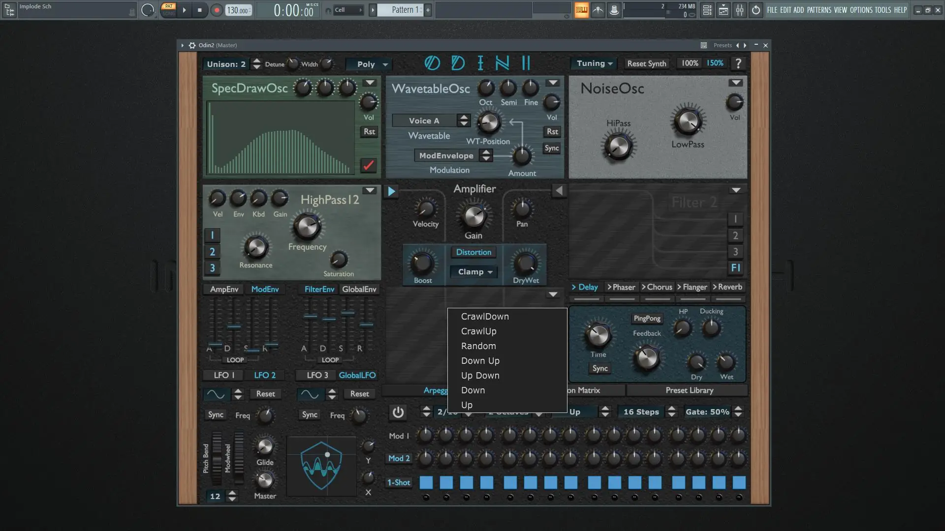 Интерфейс TheWaveWarden организован логично и интуитивно понятно, несмотря на большое количество параметров. Осцилляторы настраиваются в верхней части окна, где можно выбрать тип волны, настроить частоту и синхронизацию. Ниже расположены фильтры, каждый из которых можно подключить независимо или каскадно. Эффекты активируются в отдельном модульном блоке, а их параметры легко модулируются через LFO или огибающие. Матрица модуляции позволяет назначать источники, такие как MIDI Breath (CC 2), на любые целевые параметры.