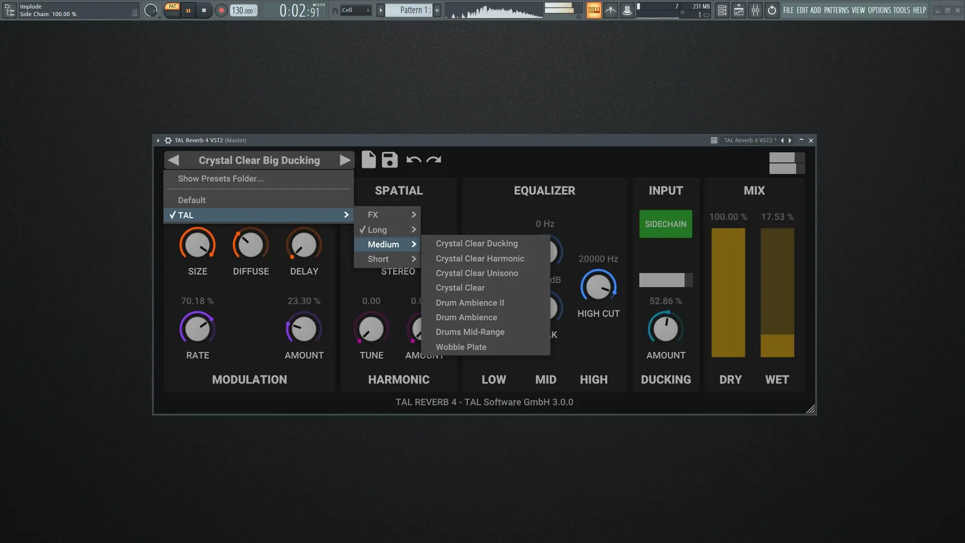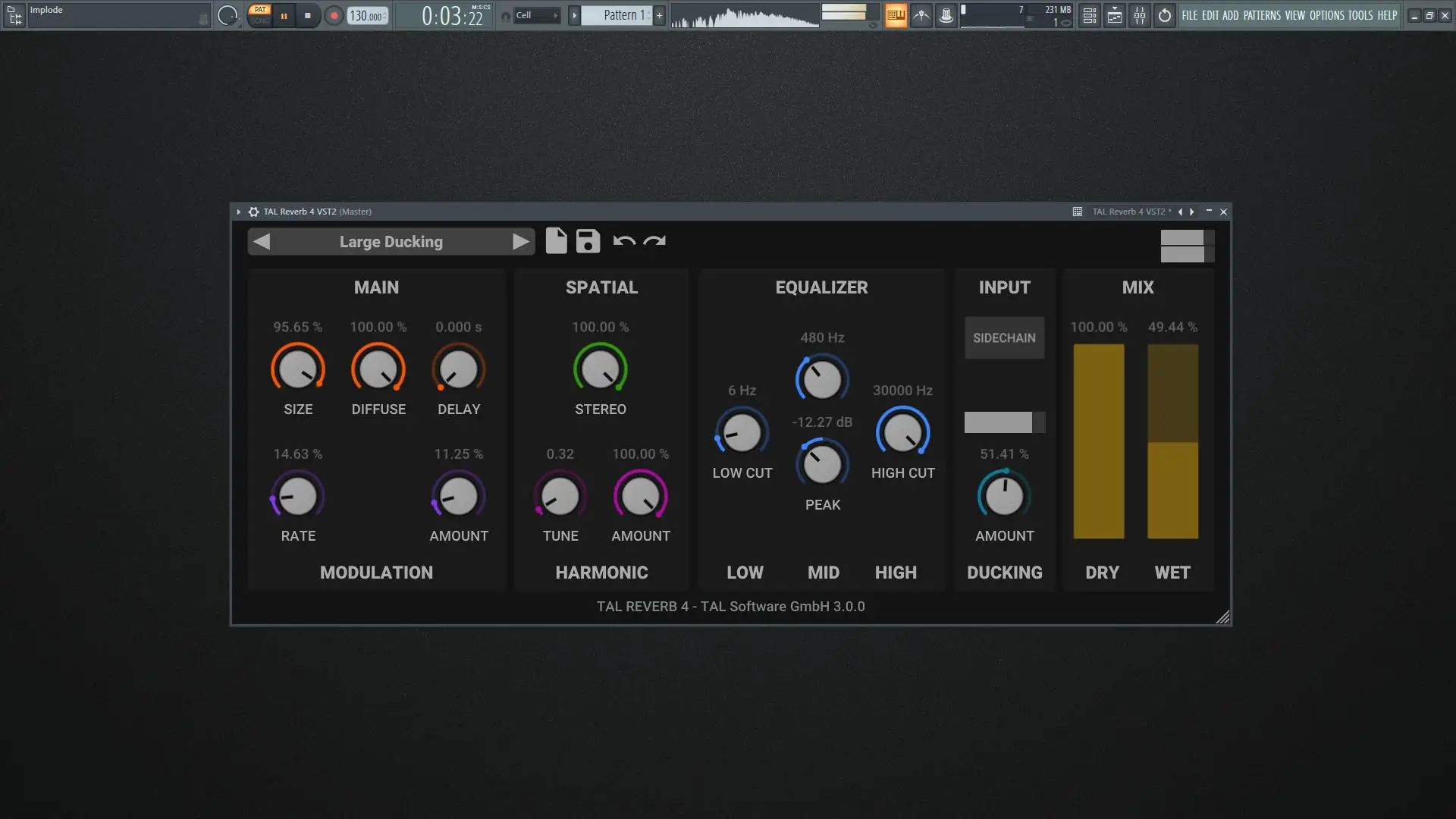 TAL-Reverb-4 обладает быстрым временем нарастания, что делает его особенно эффективным при работе с длинными аудиозаписями и вокальными партиями.