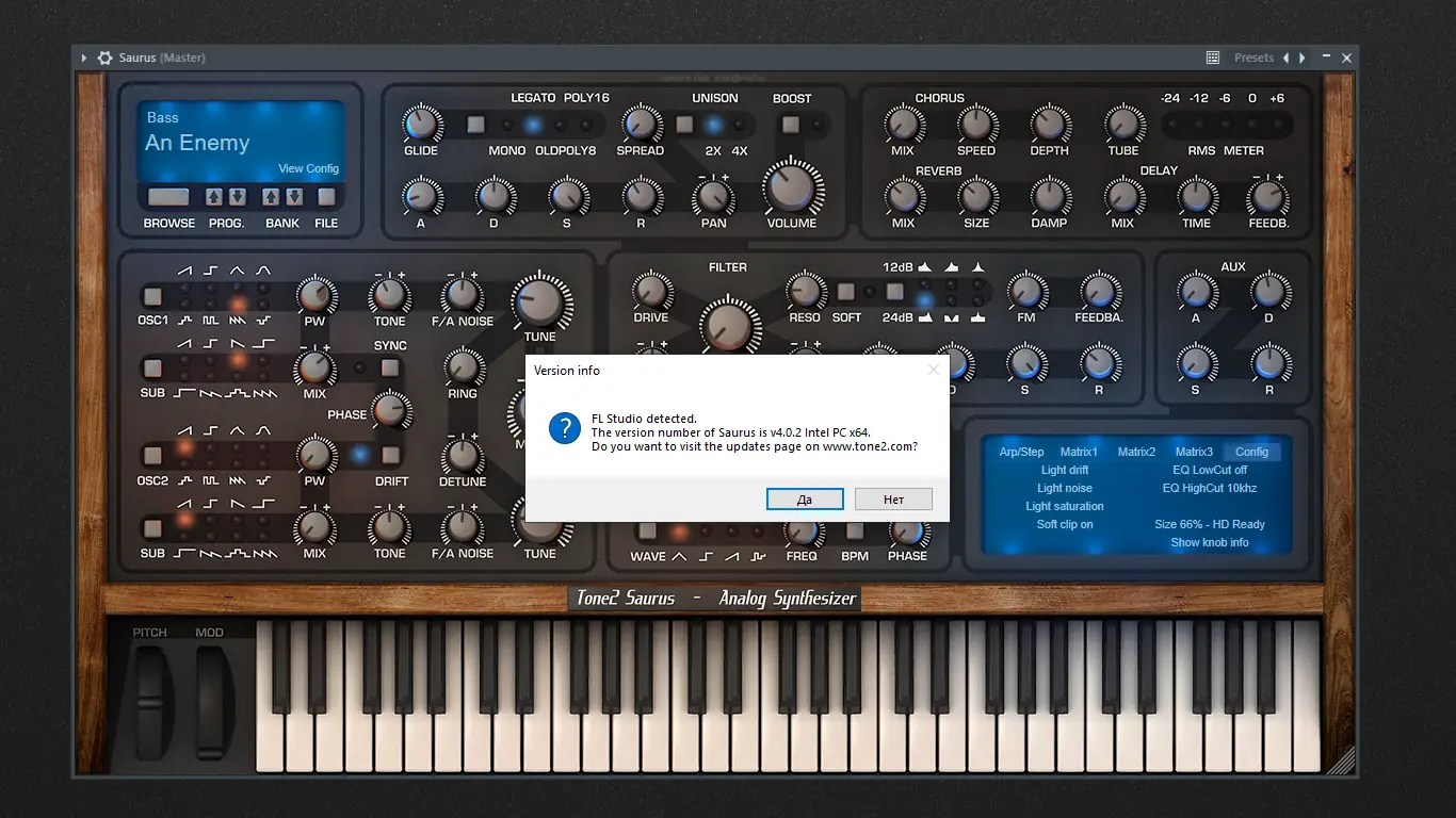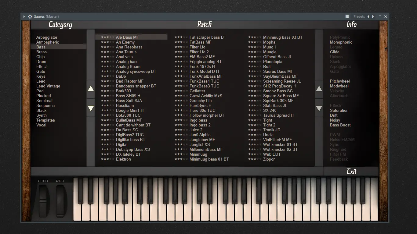Saurus 4 — это программный синтезатор от компании Tone2, построенный на передовой технологии True Analog Modelling Technology, обеспечивающей точное воссоздание звучания классических аналоговых синтезаторов в цифровой среде. Инструмент сочетает в себе богатую детализацию аналогового звука, широкие возможности модуляции и современный интерфейс, ориентированный на удобство работы. Благодаря обширной библиотеке пресетов и продвинутым функциям арпеджиатора, фильтрации и унисона, Saurus 4 подходит как для создания сложных тембров, так и для живого исполнения.