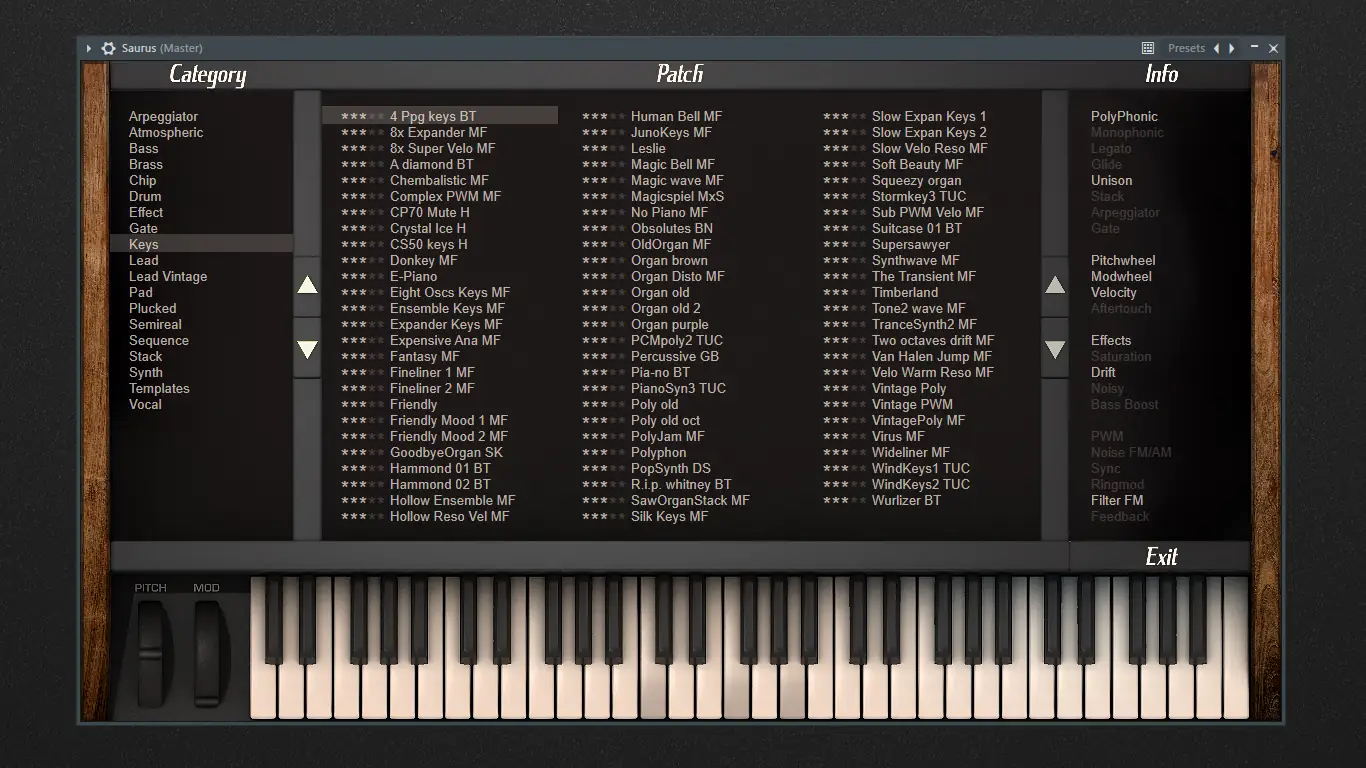 Saurus 4 предлагает значительные преимущества перед конкурентами, особенно в области звуковой точности и функциональности. Архитектура синтезатора позволяет заменить множество дорогих аналоговых устройств, обеспечивая при этом более широкий диапазон звуков. Интерфейс интуитивно понятен и ориентирован на быструю навигацию, что ускоряет процесс создания музыки.