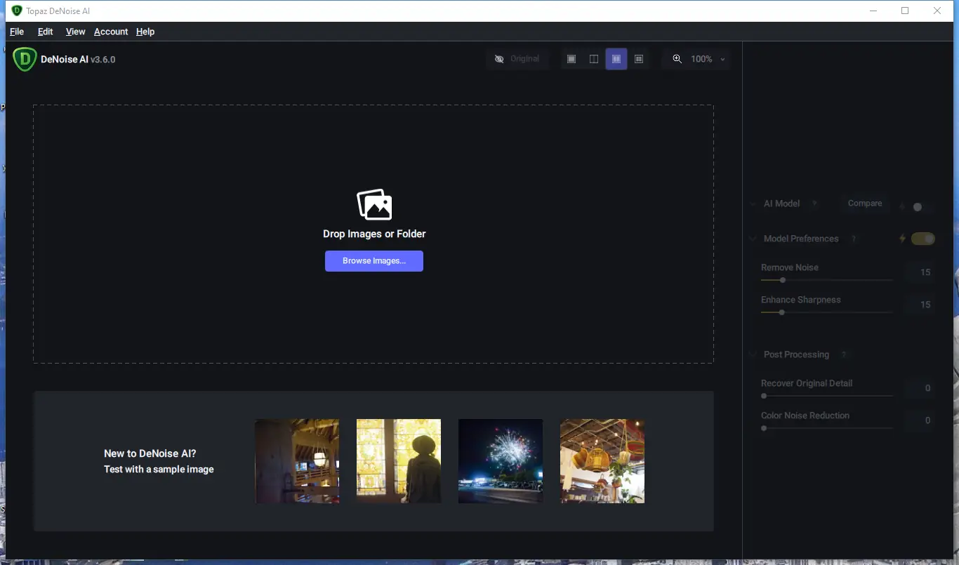 Интерфейс программы интуитивно понятен и оптимизирован для быстрой работы. После запуска достаточно загрузить изображение, после чего можно воспользоваться автоматической настройкой, которая подберёт оптимальные параметры шумоподавления. Для более тонкой настройки доступны ползунки, управляющие уровнем подавления цветового и светового шума, а также восстановлением деталей. Двойной щелчок по любому ползунку позволяет быстро сбросить его значение. Наличие пресетов и клавиш быстрого доступа ускоряет рабочий процесс, особенно при обработке серии снимков. Также поддерживается стабильное масштабирование изображения для проверки качества обработки в режиме реального времени.