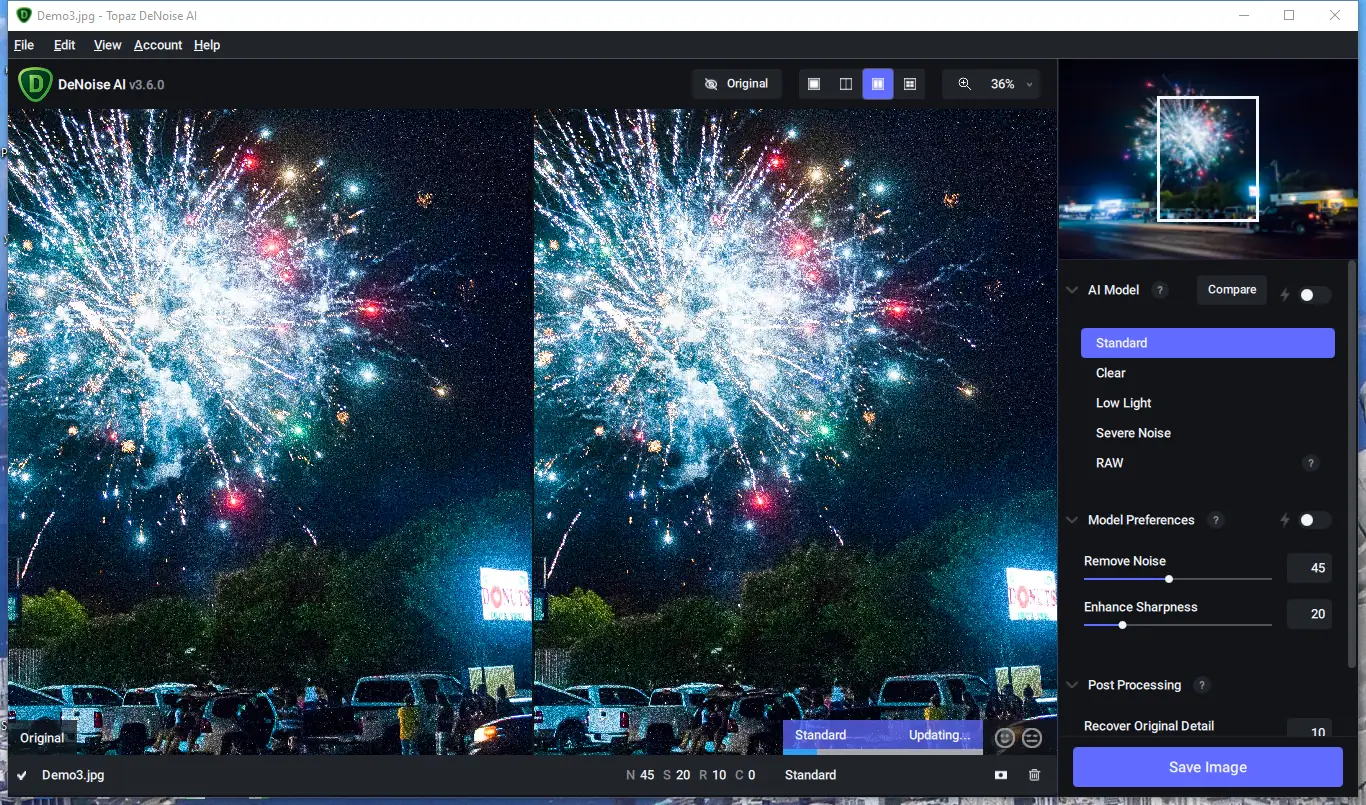 Программа использует технологии машинного обучения, чтобы различать реальные детали изображения и цифровой шум, что делает её значительно эффективнее классических методов. Вместо того чтобы просто размывать зашумленные участки, как это делают традиционные редакторы, DeNoise AI анализирует структуру фото и восстанавливает утраченные элементы. Это особенно полезно при съёмке в тёмных условиях, при использовании длинных выдержек или при работе с камерами, не обладающими высокой светочувствительностью. Результат — чистое, детализированное изображение без артефактов и потери текстуры.