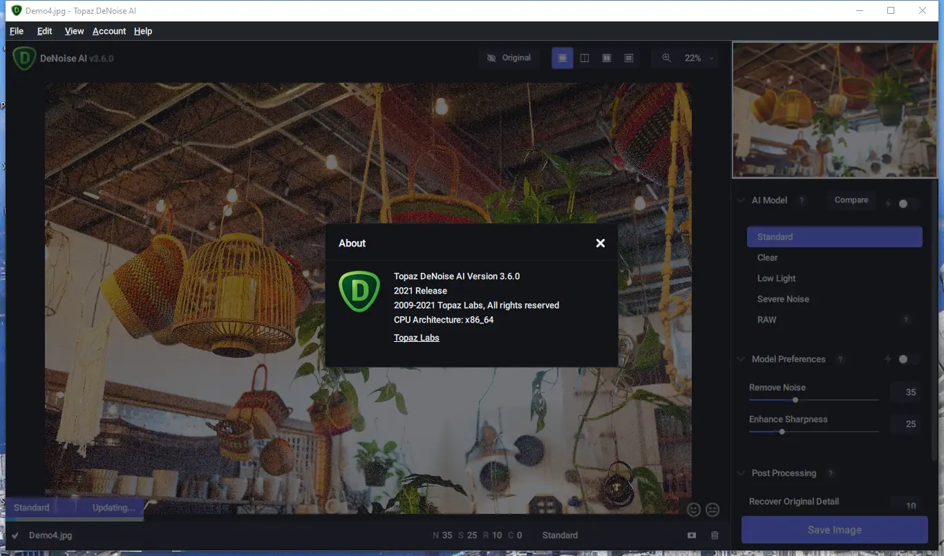 Topaz DeNoise AI — это современный инструмент на базе искусственного интеллекта, предназначенный для эффективного подавления шума и восстановления деталей на цифровых изображениях. Программа идеально подходит для фотографов, работающих в условиях низкой освещённости или при высоких значениях ISO. Благодаря передовым алгоритмам обработка изображений становится максимально точной и естественной.