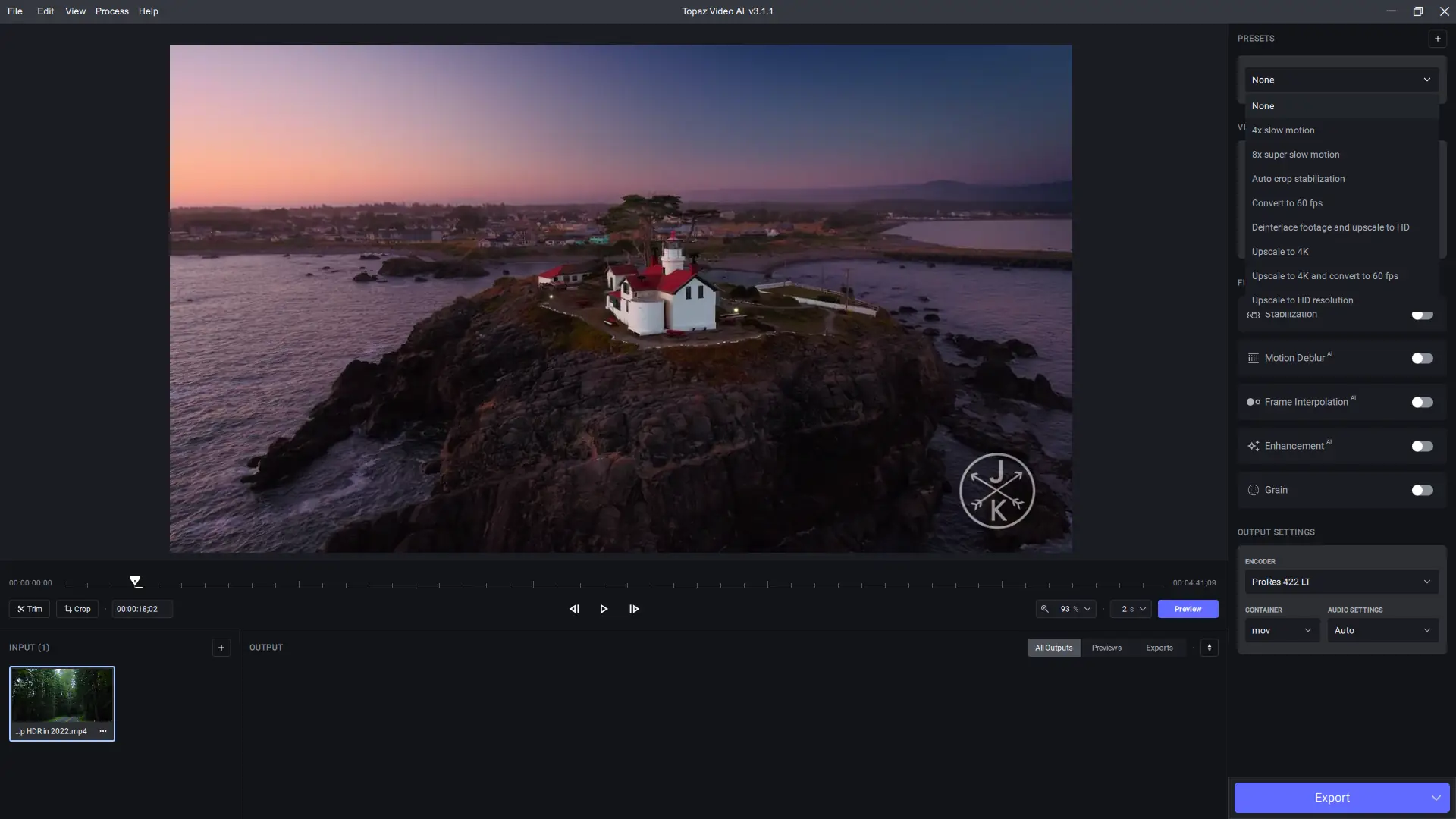 Topaz Video AI — программное обеспечение на основе искусственного интеллекта для масштабирования и улучшения видео до 8K с высокой детализацией и плавностью движения. Продукт использует нейронные сети, обученные на тысячах видеоданных, чтобы восстанавливать чёткость, повышать резкость и устранять артефакты сжатия. Подходит для обработки старых домашних, DVD-контента, игровых записей и YouTube-роликов.