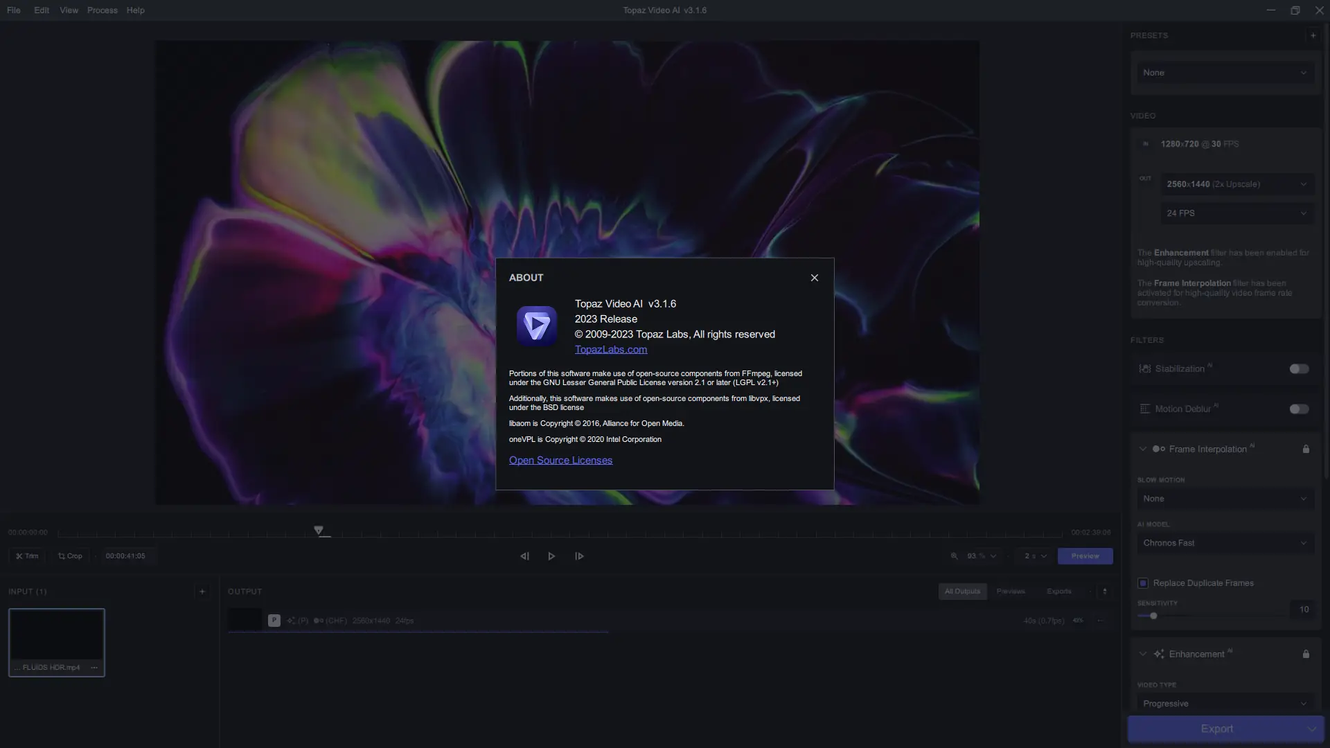Topaz Video AI — программа для улучшения видео с использованием технологий искусственного интеллекта, способная увеличивать разрешение до 8K с сохранением детализации и плавности движения. Продукт применяет глубокое обучение для анализа и восстановления изображения, превращая низкокачественные ролики в чёткие и детализированные кадры. Подходит для обработки домашних архивов, DVD, игрового контента и видео с цифровых зеркалок.