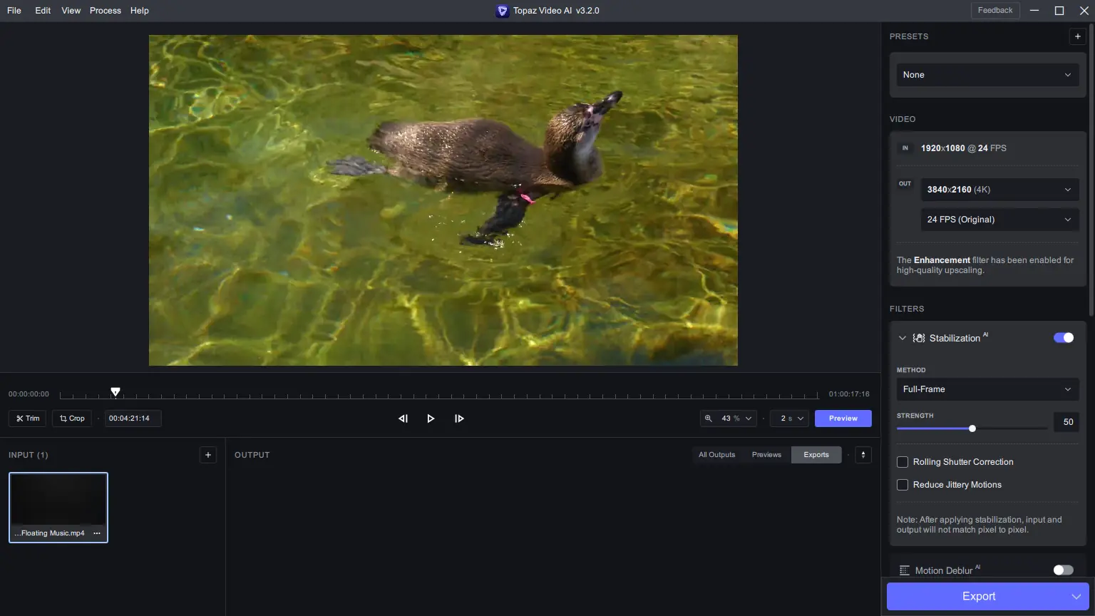Работа с программой начинается с импорта видеофайла через встроенный проводник. Поддерживаются различные форматы, включая MTS, что расширяет совместимость с камерами и устройствами записи. После загрузки пользователь выбирает нужный алгоритм обработки — например, для анимации, реального видео или игр — и задаёт целевое разрешение. Далее система автоматически анализирует последовательность кадров, применяет AI-модели и запускает рендеринг. Процесс может занимать некоторое время в зависимости от продолжительности ролика и мощности оборудования, особенно при работе с 8K-экспортами. После завершения доступен предпросмотр и сохранение результата в выбранный формат с настройкой битрейта аудио, по умолчанию установленного на 320 кбит/с.