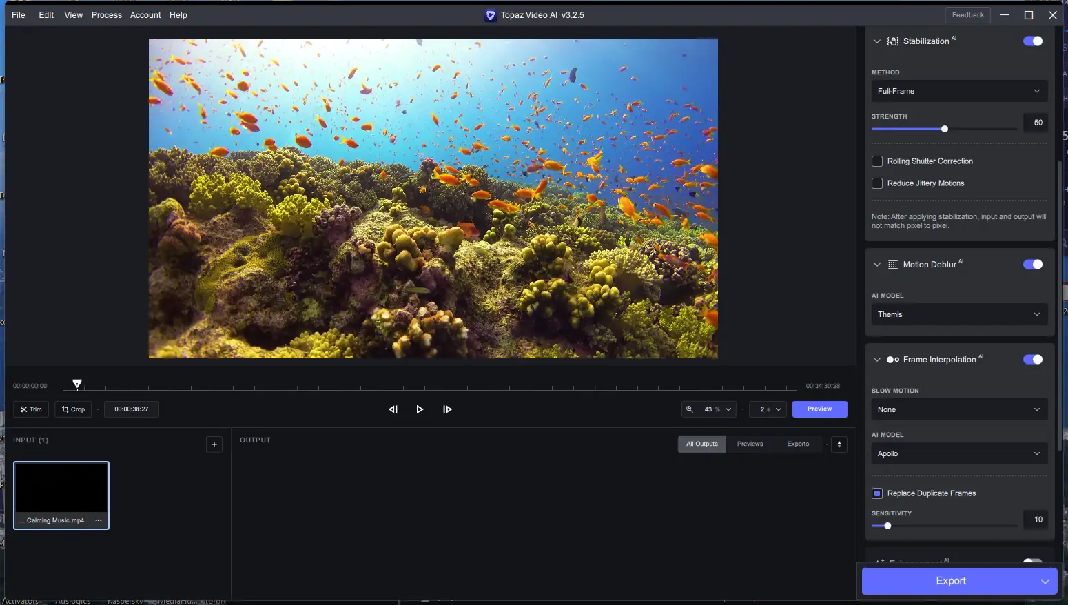 Topaz Video AI — программное обеспечение нового поколения для апскейлинга видео с использованием технологий искусственного интеллекта. Приложение повышает качество видеоматериалов до разрешения 8K, восстанавливая детали и обеспечивая плавность движений. Подходит для обработки старых домашних фильмов, DVD-архивов и контента с низким разрешением.