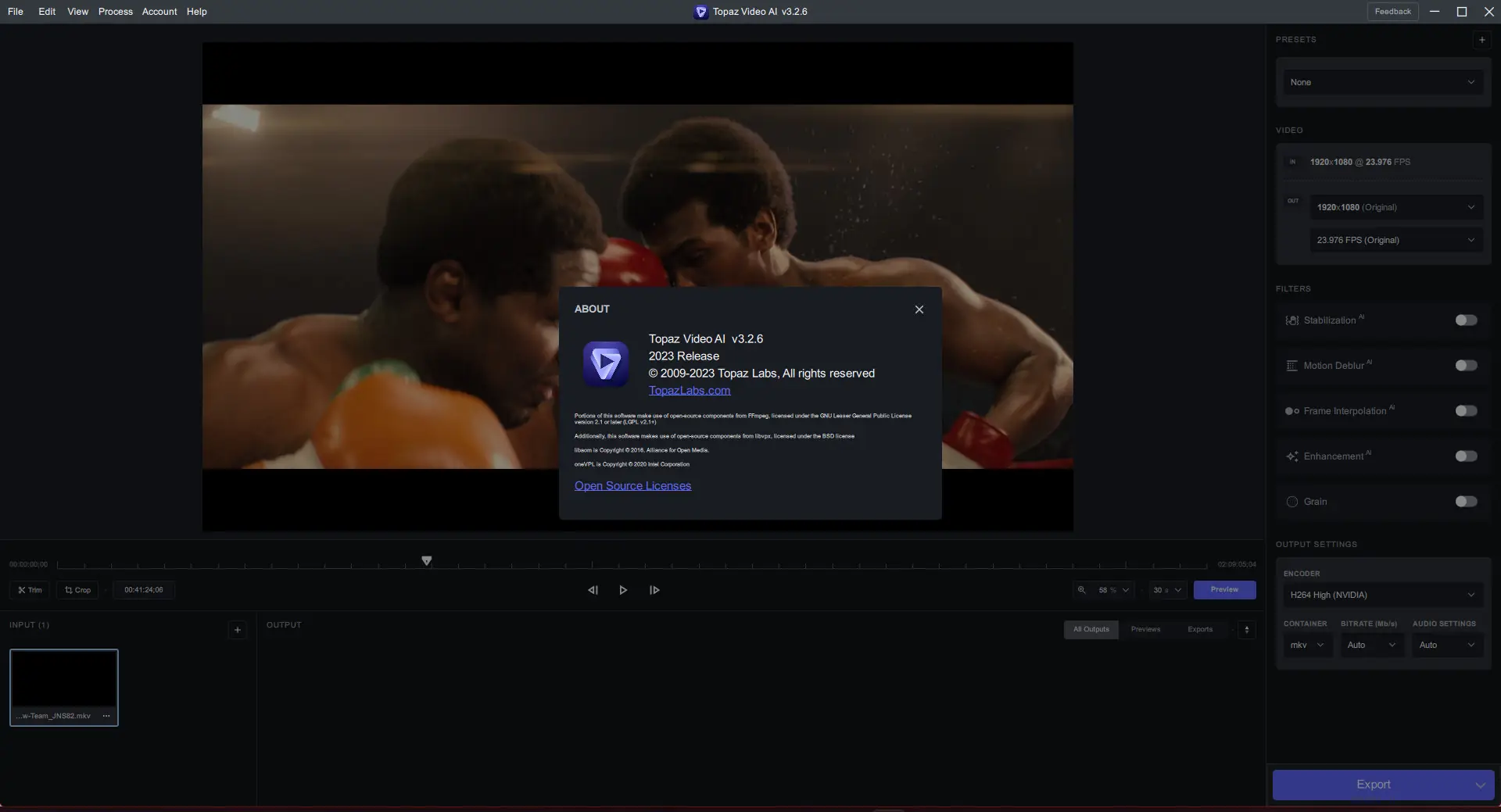 Topaz Video AI выделяется на фоне аналогичных решений благодаря высокой точности обработки и глубокой интеграции ИИ. Программа демонстрирует стабильную работу с большими объёмами данных, поддерживает современные форматы и кодеки. При этом она требует мощного оборудования, особенно при рендеринге в 4K и выше. Также необходимо подключение к интернету для активации лицензии.