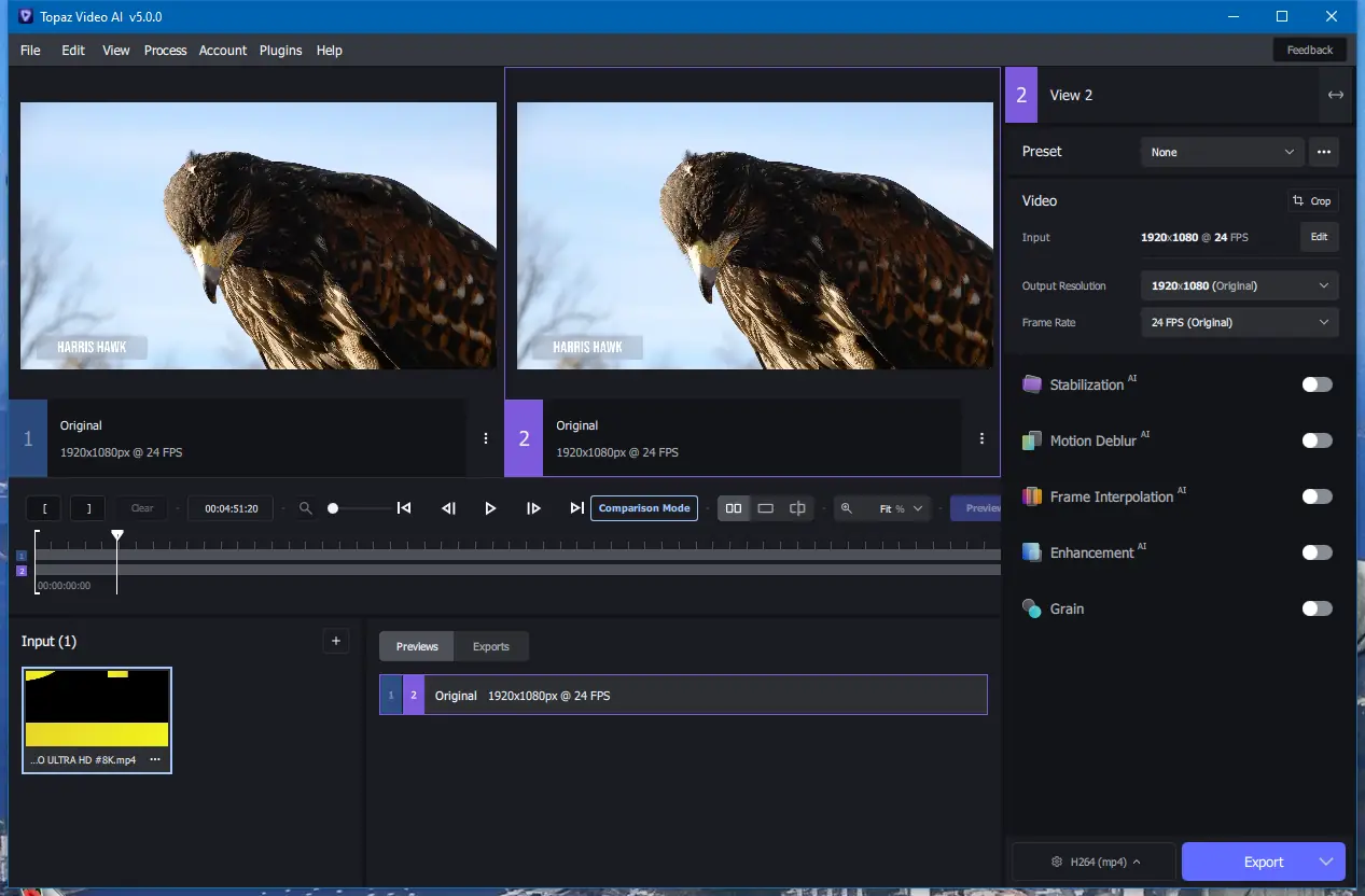 Программа демонстрирует высокую эффективность при работе с низкокачественными источниками, обеспечивая заметное улучшение чёткости и детализации. В отличие от аналогов, Topaz Video AI сохраняет плавность движения и минимизирует шум, что особенно важно при увеличении разрешения. Однако обработка требует значительных вычислительных ресурсов, особенно при работе с 4K и 8K выводом.