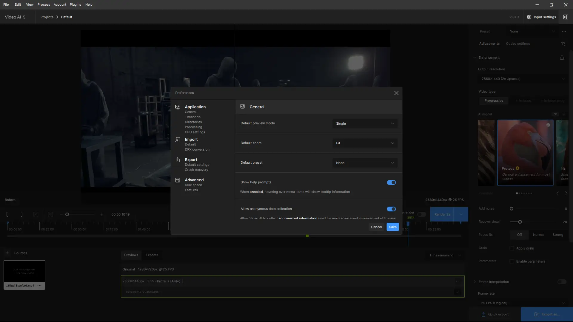 Topaz Video AI — программное обеспечение для увеличения и улучшения качества видео с помощью технологий искусственного интеллекта. Программа преобразует низкокачественные записи в чёткие изображения с разрешением до 8K, восстанавливая детали и обеспечивая плавность движения. Подходит для обработки домашних архивов, игрового контента и старых DVD-роликов.