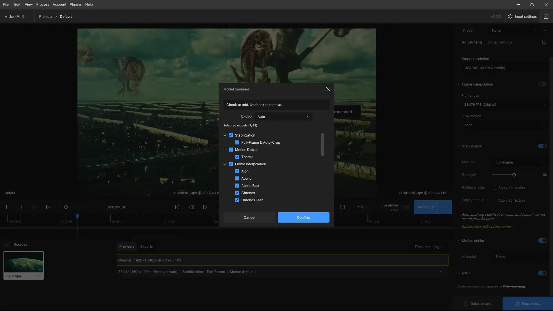 Интерфейс приложения интуитивно понятен и не требует глубоких знаний в области видеомонтажа. Достаточно загрузить исходный файл, выбрать целевое разрешение и модель обработки, после чего начать рендеринг. Программа автоматически проанализирует видеопоследовательность, применит соответствующие фильтры и сохранит результат в указанной папке. Процесс может занимать некоторое время в зависимости от длительности видео и мощности системы, но не требует постоянного участия пользователя.