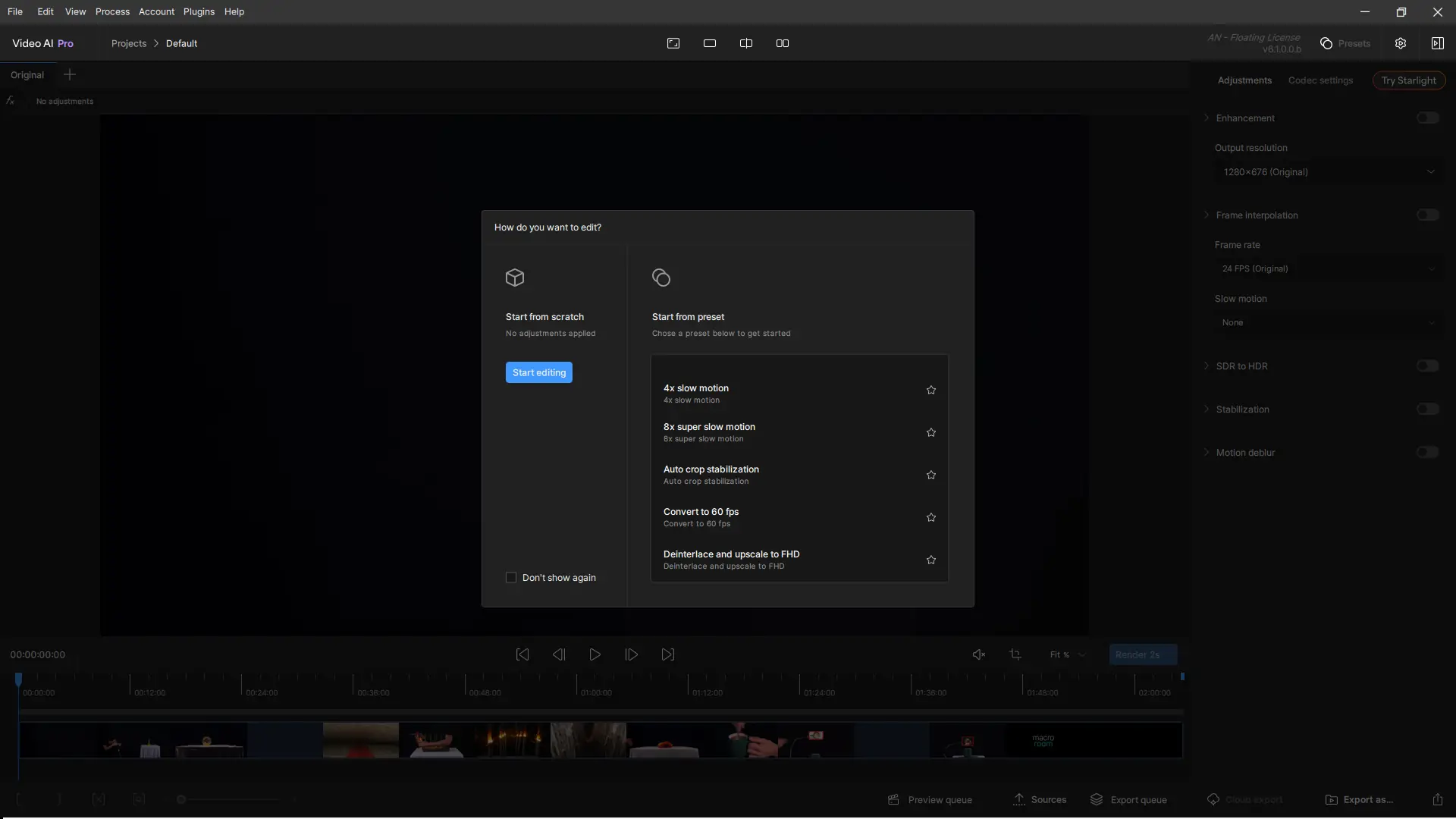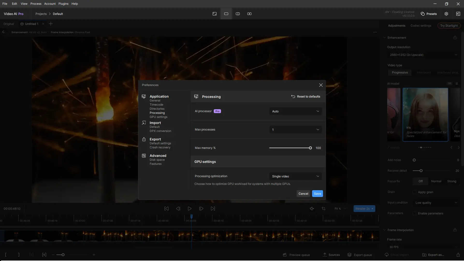 После настройки применяются фильтры, такие как увеличение детализации, стабилизация или шумоподавление. Для обработки используется локальный рендеринг или облачная обработка, в зависимости от настроек. Готовое видео экспортируется в выбранном формате с возможностью отслеживания прогресса в обновлённой очереди экспорта.