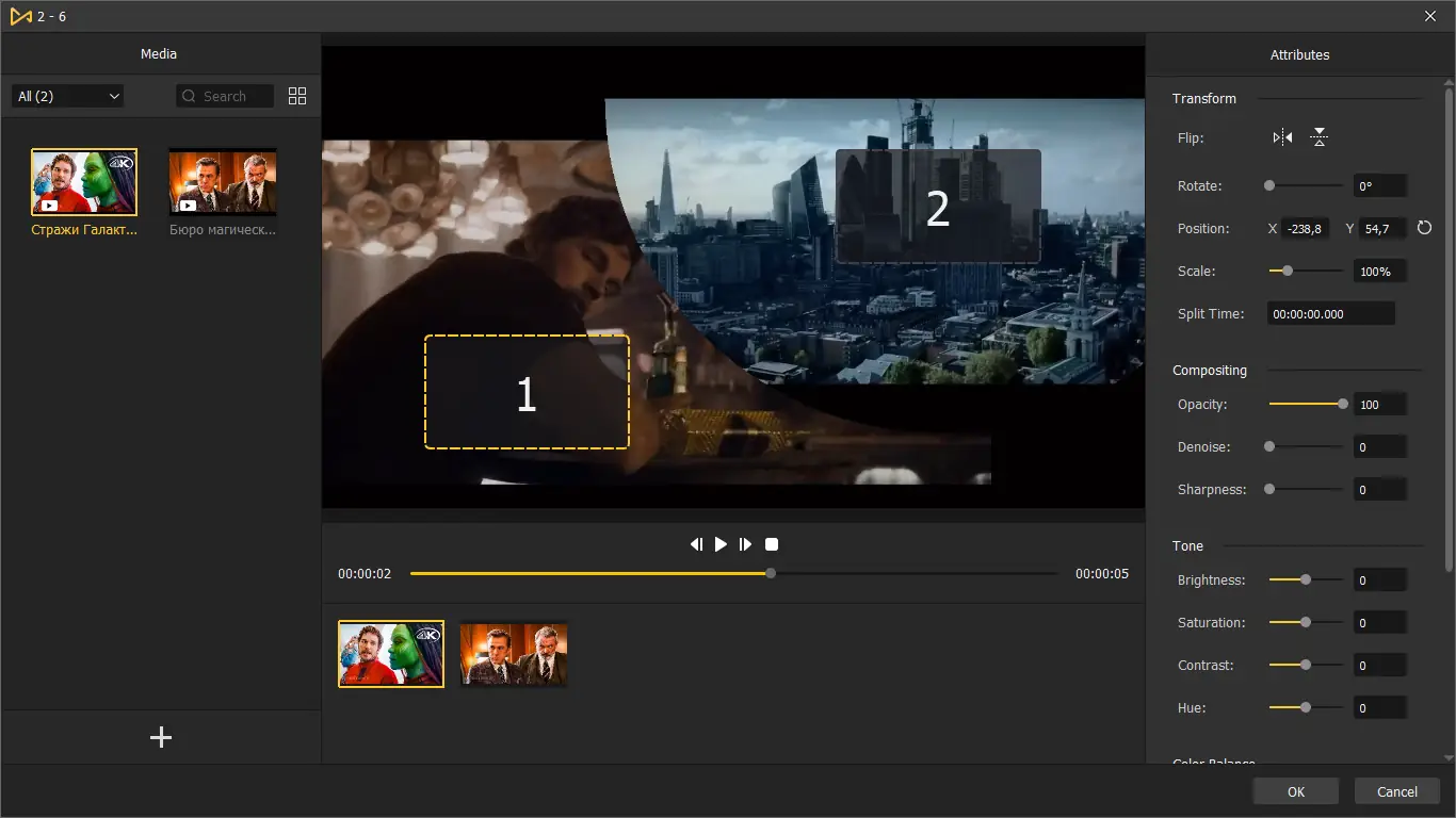- Экспорт в популярные форматы и прямая публикация на YouTube, Vimeo, Facebook