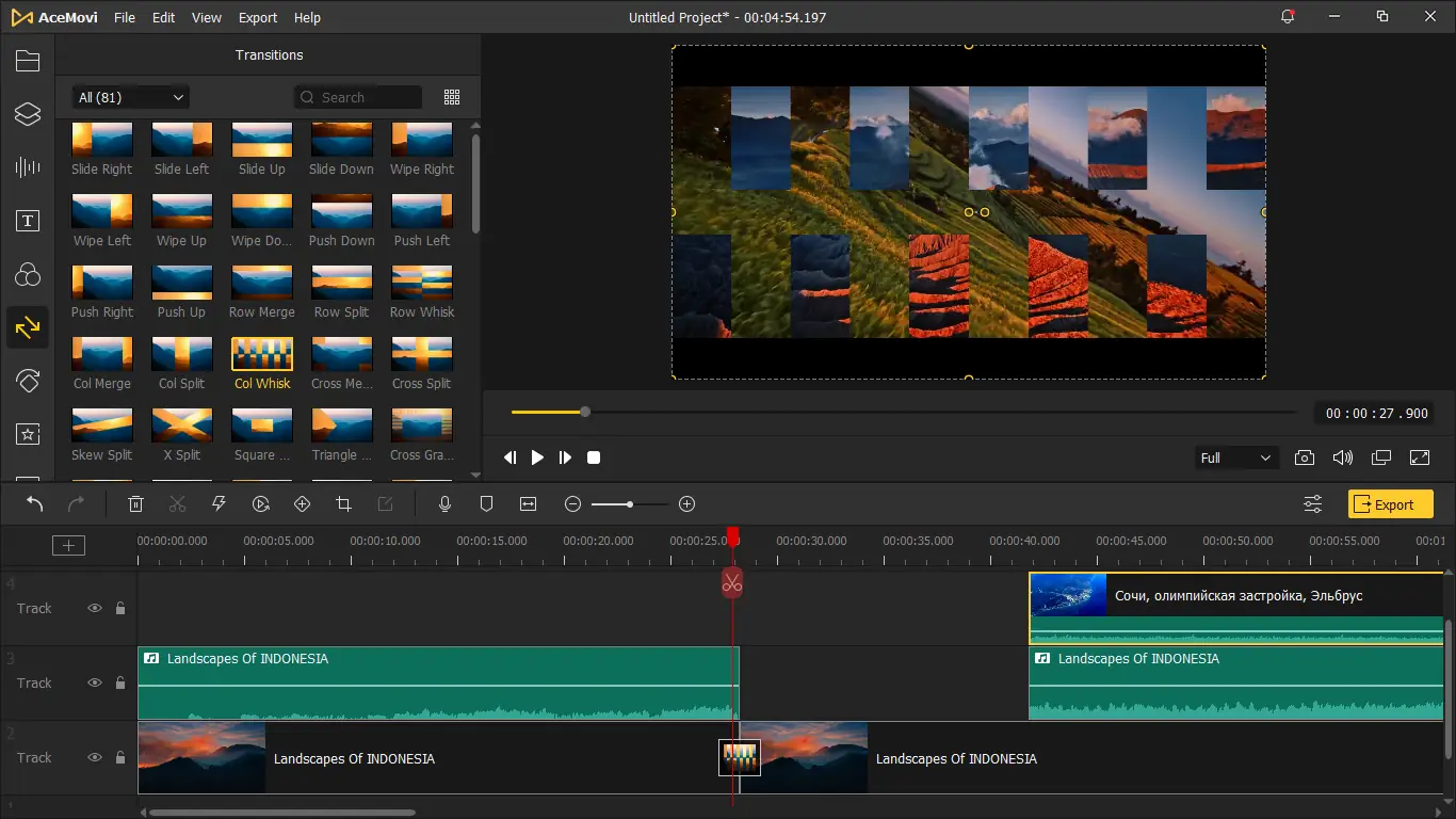 - Наличие встроенных переходов, фильтров и анимационных эффектов