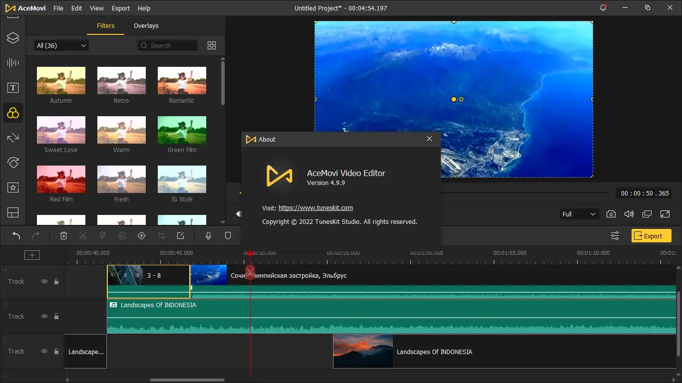 TunesKit AceMovi — это удобное программное обеспечение для создания и редактирования видео с интуитивно понятным интерфейсом, подходящее как для новичков, так и для опытных пользователей. Программа позволяет не только монтировать видеоматериалы, но и записывать экран, добавлять эффекты, музыку, текст и экспортировать результат в популярные форматы. Благодаря широкому набору инструментов, она подходит для создания контента различного назначения — от личных видео до профессиональных презентаций.