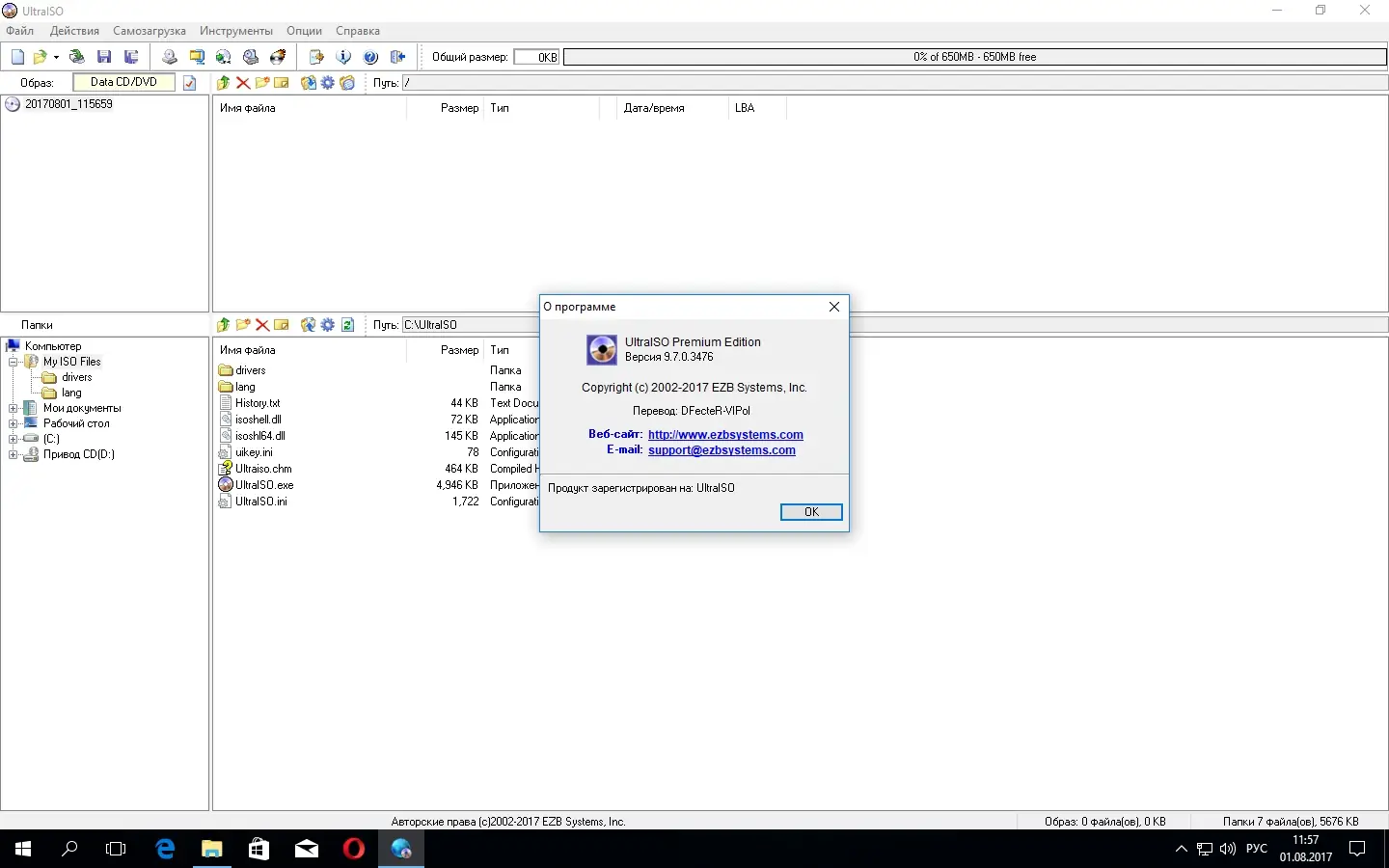 UltraISO отличается стабильностью, широкой совместимостью и высокой функциональностью. Программа поддерживает как базовые, так и продвинутые операции с образами, включая работу с автозагрузкой, UDF и ISO 9660. Интерфейс интуитивно понятен, а наличие русского языка упрощает освоение. Однако, несмотря на мощные возможности, бесплатная версия имеет ограничения по размеру редактируемых образов, а полная функциональность доступна только после активации. Также возможны сложности при работе с повреждёнными или нестандартными образами.