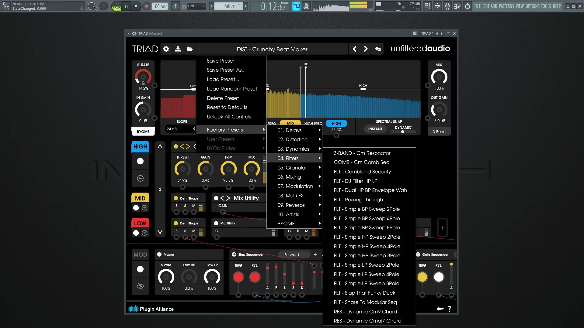 Unfiltered Audio — TRIAD — это многоканальный процессор эффектов, построенный на основе модульного движка BYOME, позволяющий разделять аудиосигнал на три частотные полосы для независимой обработки. Каждая полоса может проходить через собственный набор эффектов, включая дисторшн, задержки, реверберацию, смещение высоты тона и гранулярный синтез. Инструмент предлагает продвинутую модуляцию, мощную визуализацию и гибкие маршруты сигнала, открывая широкие возможности для звукового дизайна.