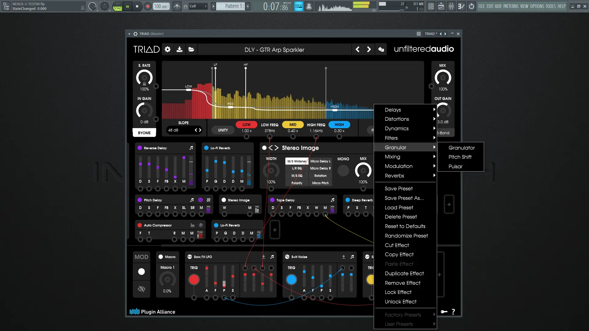 Гибкость TRIAD делает его универсальным решением для сложной обработки звука — от создания атмосферных текстур до дизайна ударных и басов.