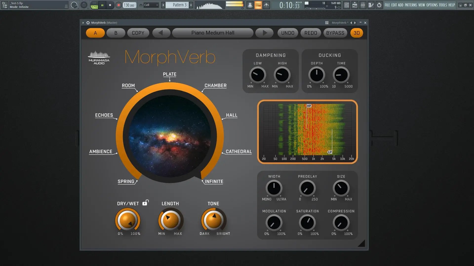 Плавное морфинг-смешение между типами реверберации делает MorphVerb незаменимым в тонкой настройке пространственного звучания.