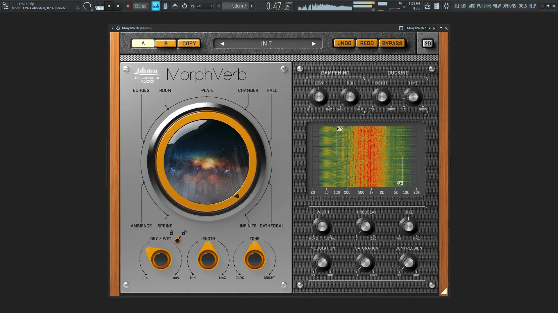 Использование MorphVerb интуитивно понятно даже новичкам в цифровой обработке звука. После загрузки плагина в DAW пользователь видит центральный интерфейс с круговой шкалой выбора типа реверберации и ползунком для плавного морфинга между режимами. Основные параметры, такие как время затухания, предварительная задержка и ширина стереообраза, настраиваются отдельно для каждого алгоритма. Дополнительные блоки позволяют регулировать насыщенность, модуляцию и компрессию отражений, что влияет на характер хвоста реверберации. Фильтры HiPass и LoPass можно перемещать прямо на спектрограмме, наблюдая за изменениями в реальном времени. Функция дакинга активируется отдельно и реагирует на входной сигнал, автоматически уменьшая громкость реверберации при появлении основного звука, что особенно полезно при обработке вокала или солирующих инструментов. Каждый пресет можно быстро найти через систему категорий, включая музыкальные жанры, типы инструментов и акустические сценарии.