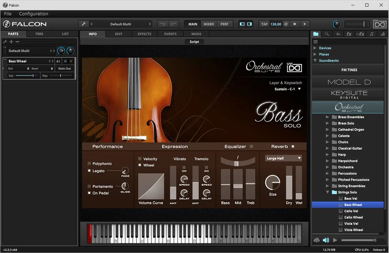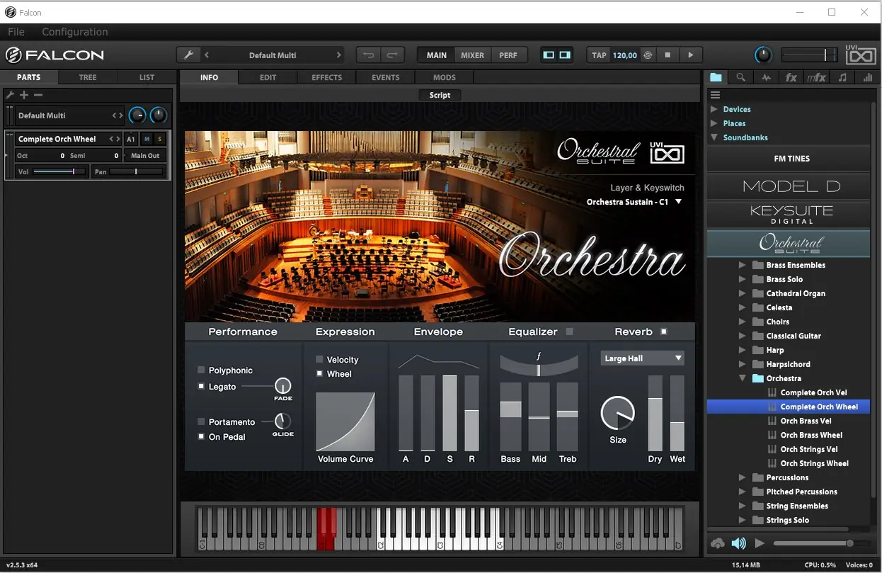 Orchestral Suite от UVI — это мощный мультимедийный инструмент, объединяющий более 60 классических оркестровых инструментов в одном пакете. Программа предлагает высококачественные семплы струнных, медных, деревянных духовых, ударных, хора и редких инструментов вроде органа, клавесина и арфы. Для работы требуется семплер UVI Falcon, обеспечивающий полный контроль и реализм звучания.