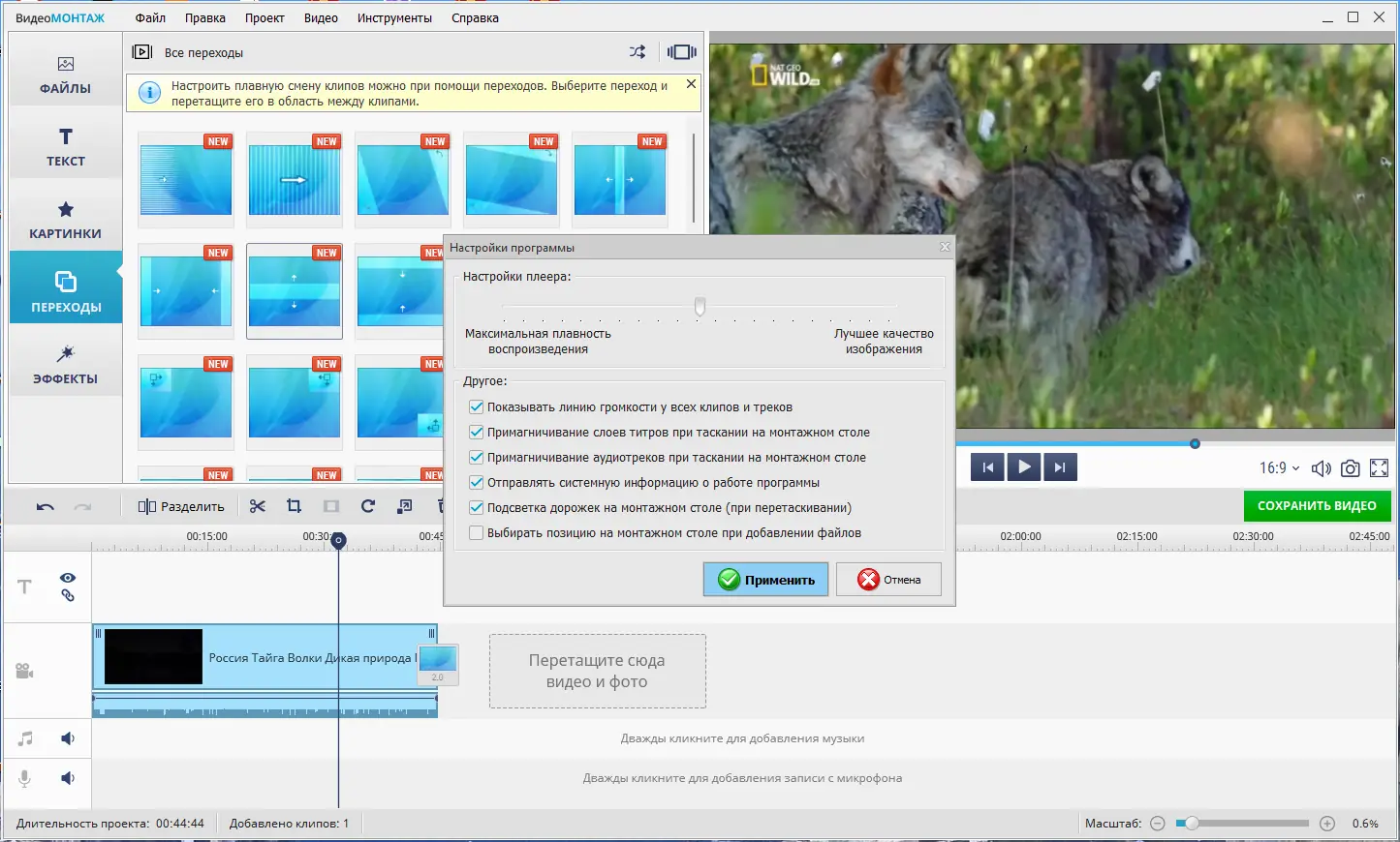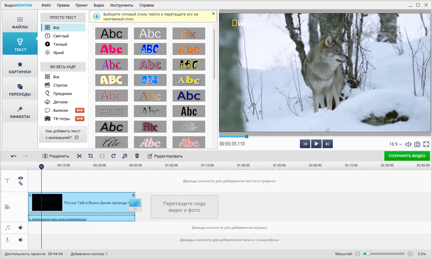 ВидеоМОНТАЖ — простой и мощный видеоредактор, который помогает создавать качественные видеоролики за несколько минут. Программа подходит как для новичков, так и для пользователей с минимальным опытом монтажа. С её помощью можно редактировать видео, добавлять эффекты, музыку и титры, а также экспортировать результат в популярные форматы.