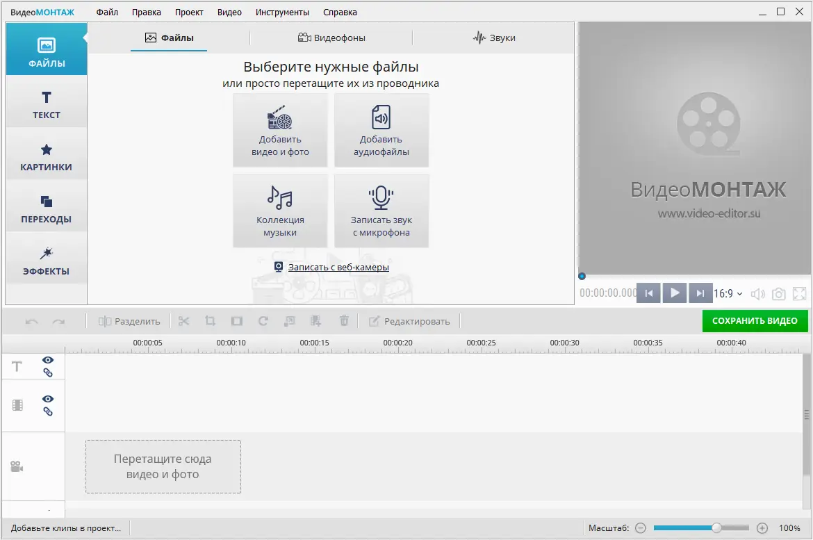 ВидеоМОНТАЖ представляет собой многофункциональное приложение для обработки и редактирования видеоматериалов. Интерфейс разработан с учётом удобства восприятия, что делает процесс монтажа интуитивно понятным. Поддержка большого количества форматов позволяет работать с файлами с разных устройств — от цифровых камер до смартфонов и веб-камер.
