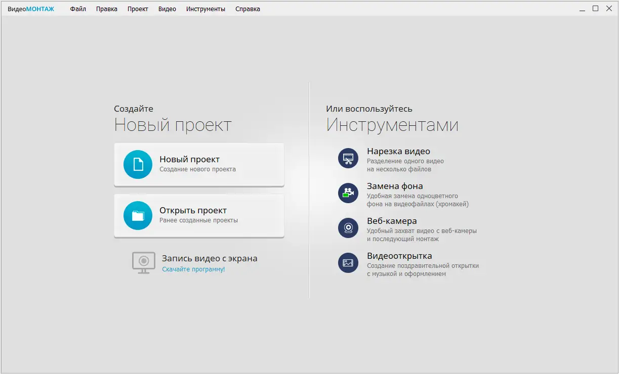 Скачать бесплатно ВидеоМОНТАЖ можно в полной версии с поддержкой русский интерфейса и всеми встроенными функциями. Это бесплатный на русском программное обеспечение, не требующее активации. Распространяется в удобном RePack-варианте с возможностью установки или распаковки портативной версии. Также в комплекте доступны курсы а, помогающие быстрее освоить базовые приёмы видеомонтажа. Программа для а работает без сбоев и совместима с современными версиями Windows.