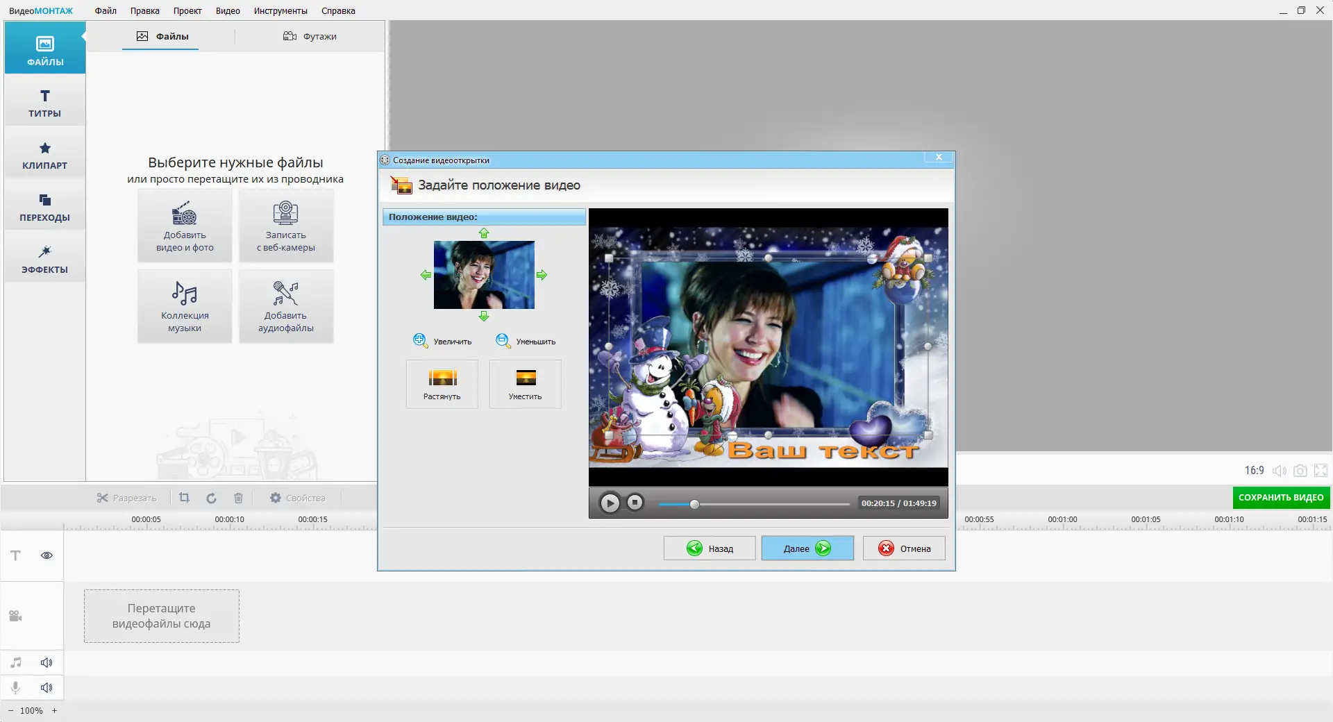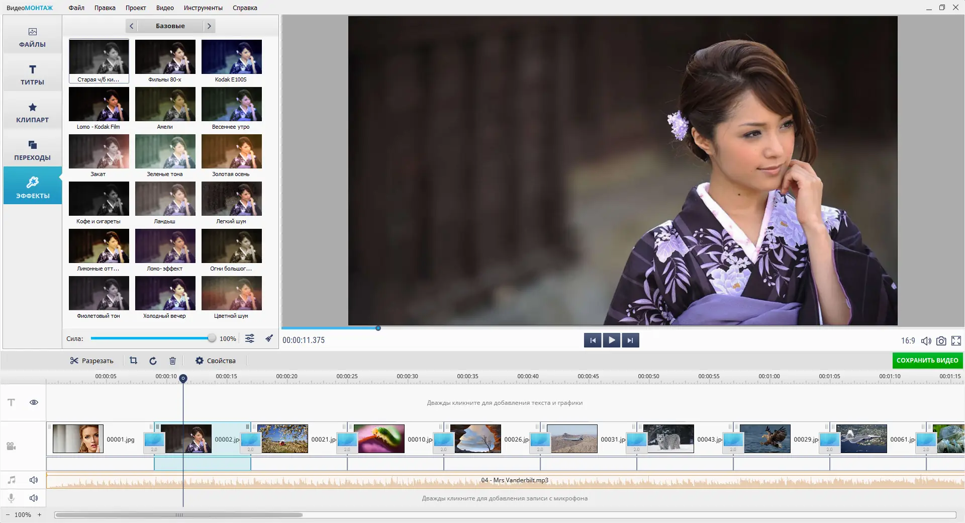 ВидеоМОНТАЖ сочетает в себе простоту интерфейса и мощные функции, необходимые для полноценного редактирования.