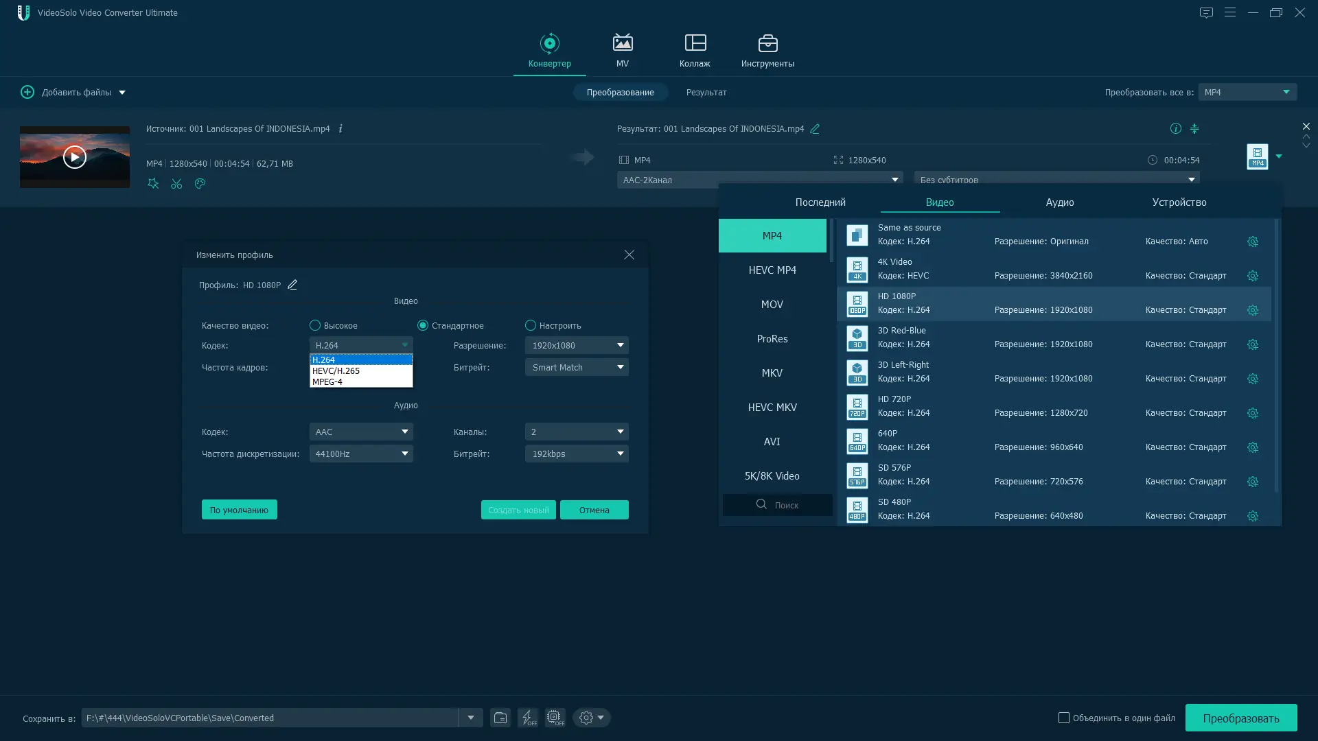 - Поддержка широкого спектра входных и выходных форматов, включая HD и 3D видео