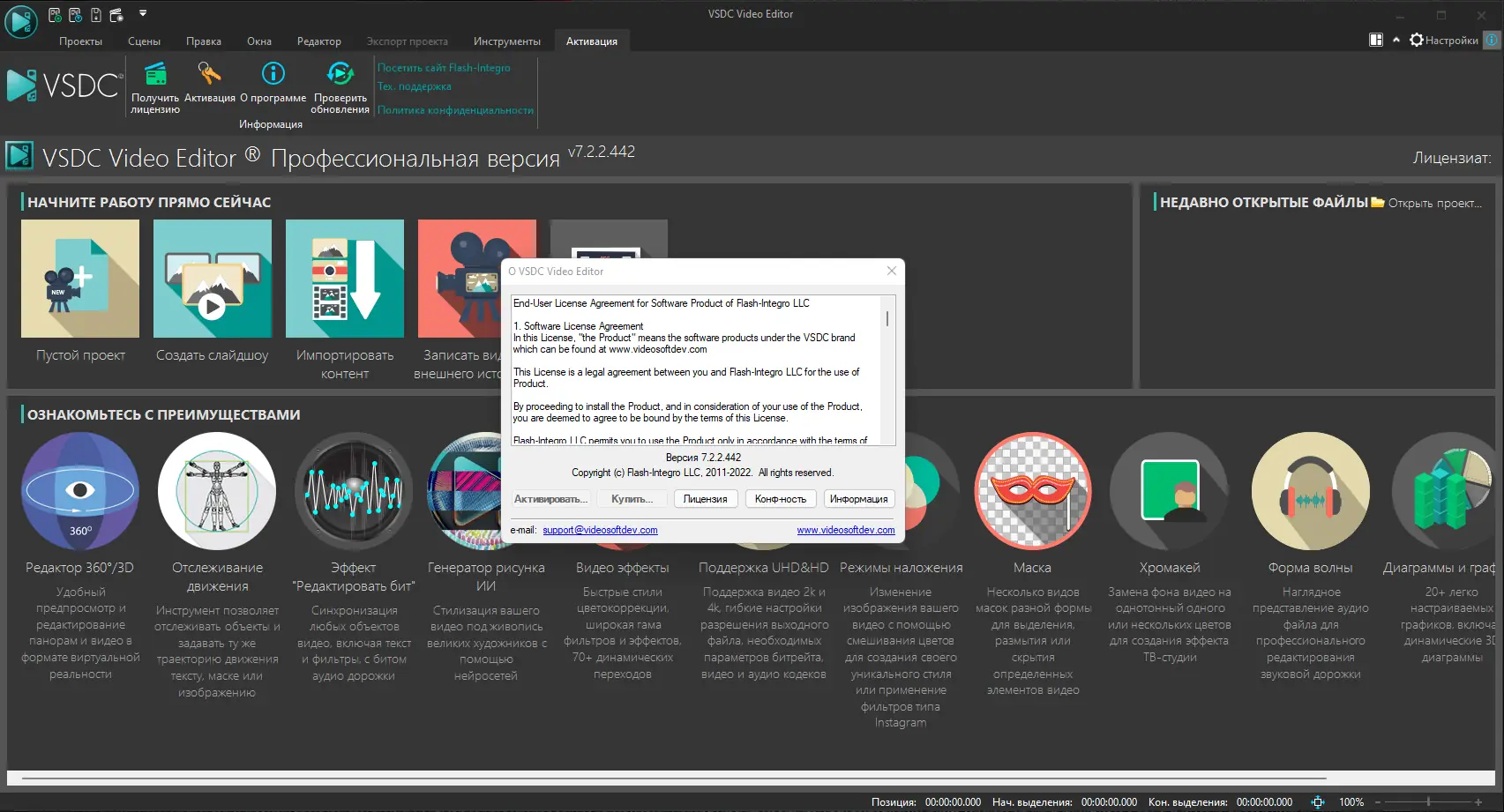 VSDC Video Editor предлагает комплексное решение для видеомонтажа, сочетающее мощные функции и доступность. Пользователи получают инструменты уровня pro, включая кинематографические эффекты, стабилизацию, поддержку альфа-каналов и работу с 360° видео. Активация приложения требует корректного ввода ключа, но после этого все функции становятся доступны без ограничений. Программа переведена на множество языков, включая русский, что упрощает освоение интерфейса. Тем не менее, из-за насыщенного функционала новичкам может потребоваться время на изучение всех возможностей.