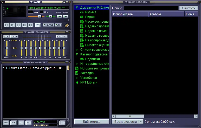 Winamp — это легендарный проигрыватель, впервые появившийся в конце 90-х и ставший неотъемлемой частью цифровой культуры. Он поддерживает широкий спектр аудиоформатов, включая MP3, OGG, AAC, WAV, а также модульные треки вроде MOD, XM, S3M и IT. Помимо звука, программа воспроизводит видеофайлы в форматах AVI, ASF, MPEG и NSV, что делает её универсальным решением для мультимедиа. Архитектура приложения позволяет подключать плагины, расширяя функциональность за счёт сторонних разработок.