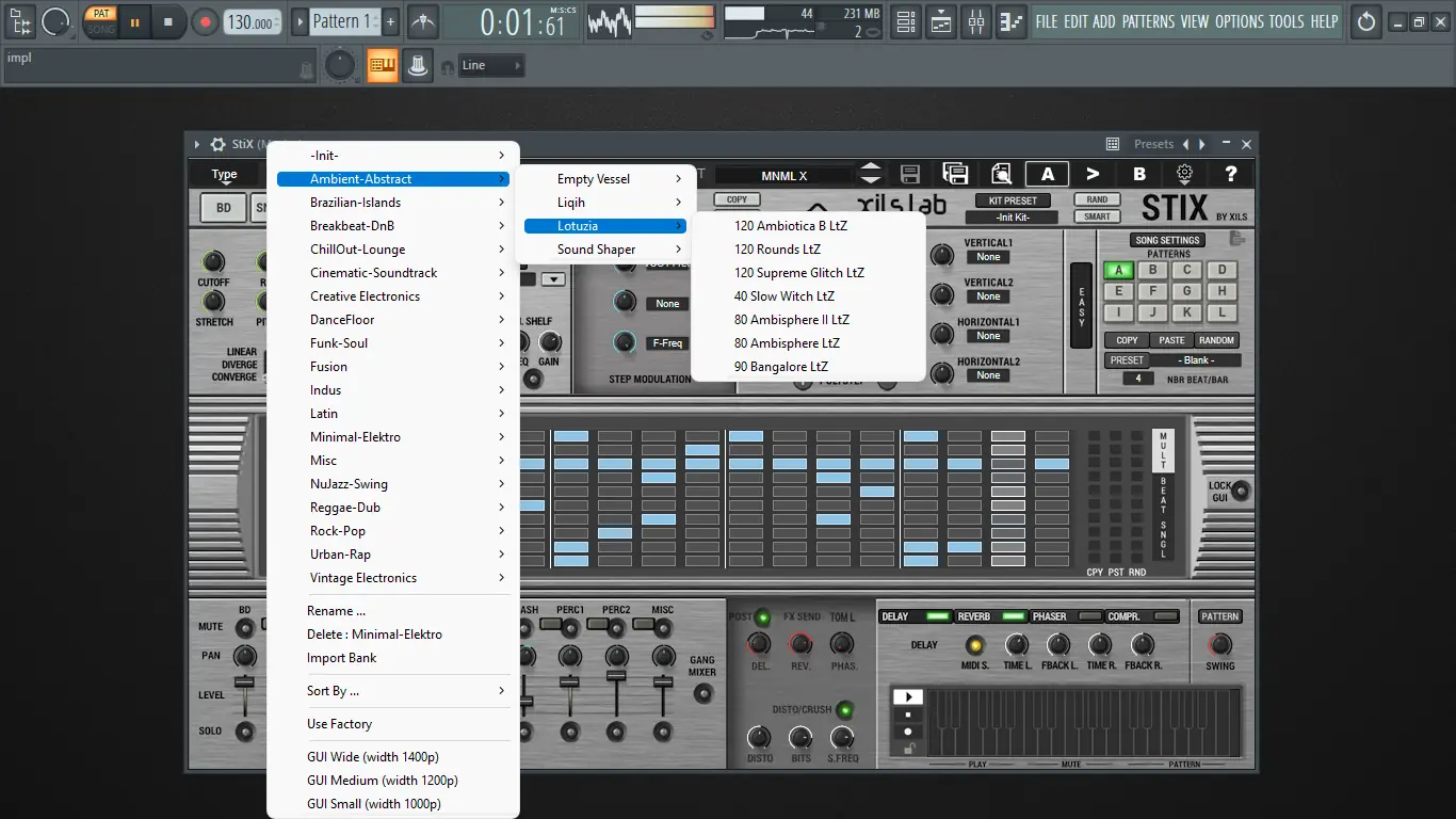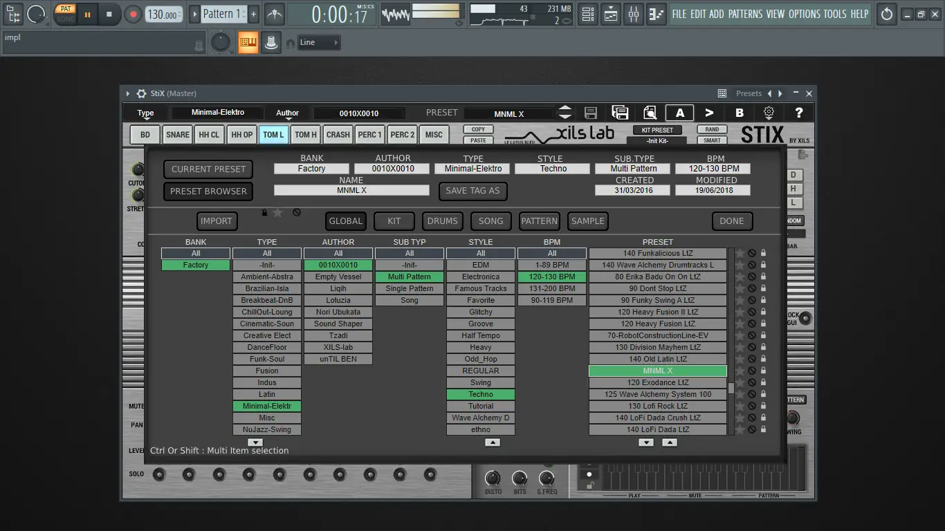 Работа с XILS-lab — StiX начинается с выбора пресета или создания нового паттерна в секвенсоре XoX. Пользователь может редактировать каждый шаг, задавая параметры срабатывания, скорость, панораму, микропозицию и модуляцию через P.Lock. Барабанные пэды настраиваются с помощью интуитивных элементов управления, включая макросы Stretch и Modal Pitch, которые позволяют мгновенно изменять характер звука. Все параметры поддаются MIDI-контролю, а автоматизация возможна через MIDI CC, что делает интеграцию с DAW максимально гибкой. Для живого выступления доступен режим запуска паттернов, переключение между ними и ручной ввод ударов с MIDI-клавиатуры.