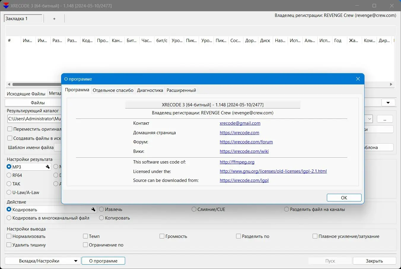 Xrecode сочетает в себе широкие технические возможности и простоту в использовании, что делает его одним из лучших решений в категории аудио конвертеров. Поддержка множества форматов, включая редкие и потоковые, позволяет обрабатывать практически любые аудиофайлы. Программа работает под Windows 7–11, а также совместима с Wine, что открывает возможности для запуска на Linux. Мультиязычный интерфейс включает русский язык, что упрощает освоение. Тем не менее, наличие предложений посещения стороннего сайта при установке может вызвать неудобства у некоторых пользователей.