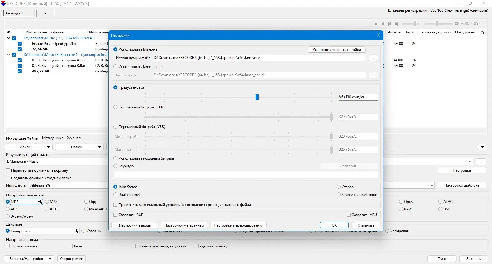 - Расширенные настройки кодирования для форматов FLAC, AAC, OGG и WavPack, включая контроль над битрейтом и качеством.