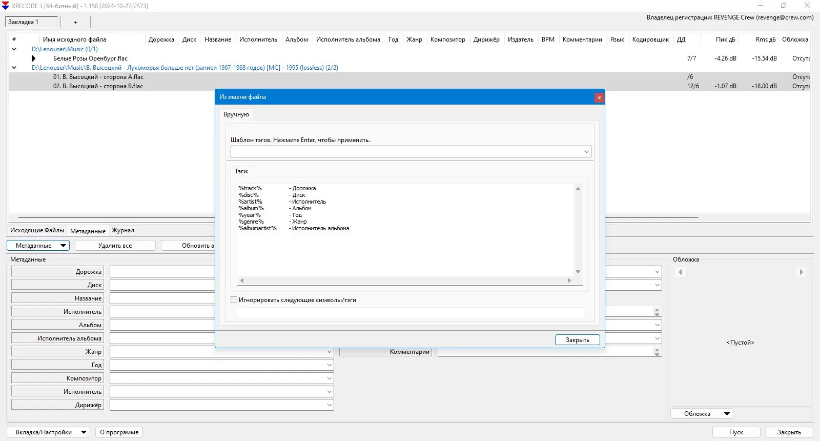 - Интегрированный редактор метаданных с поддержкой встраивания обложек и сохранения информации в отдельные файлы.