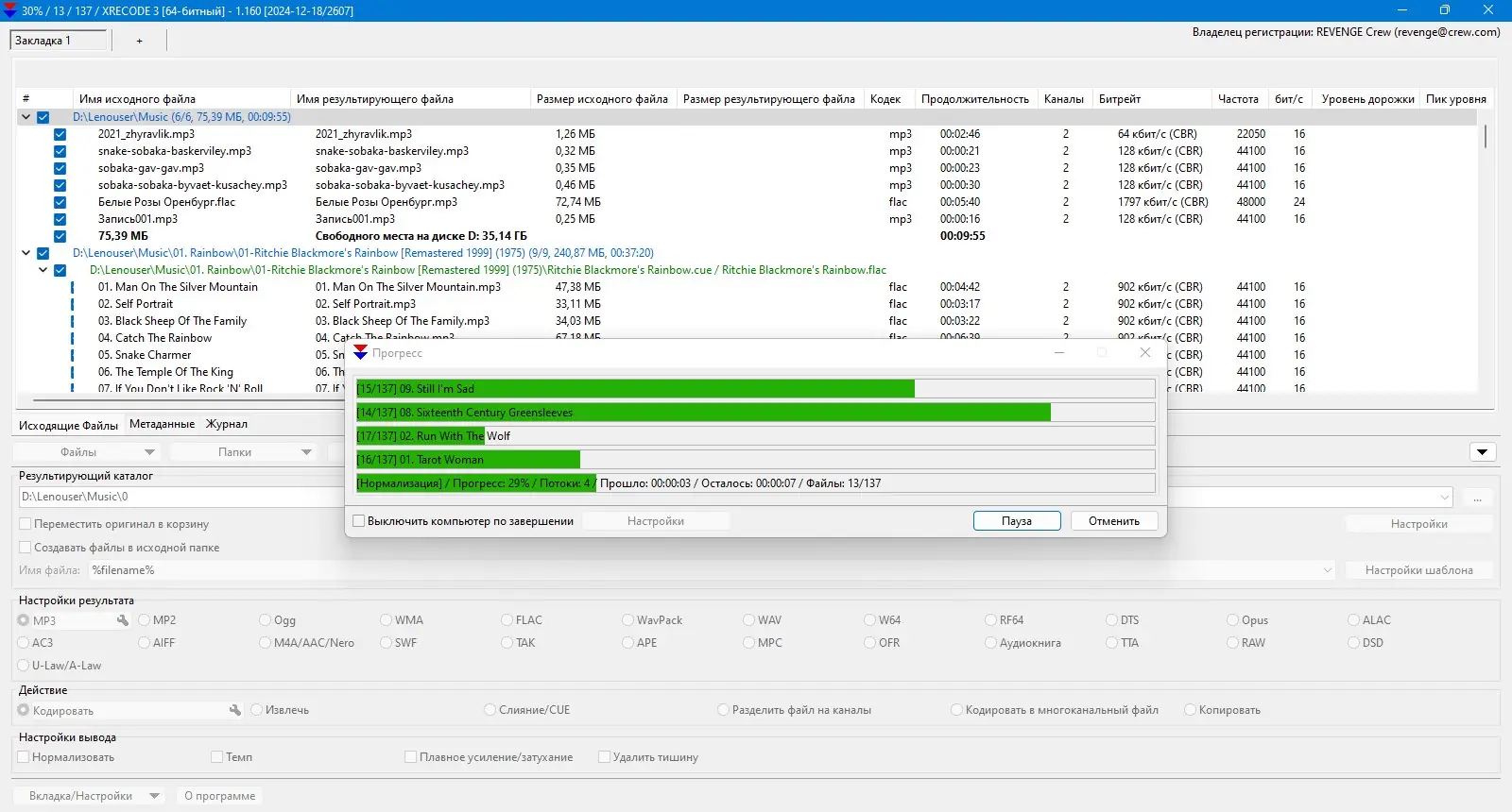 XRecode сочетает в себе высокую производительность и широкую функциональность, что делает его незаменимым инструментом для обработки аудио. Программа поддерживает параллельное конвертирование, задействуя все доступные ядра процессора для ускорения работы. Это особенно полезно при обработке больших объёмов данных, таких как коллекции музыки или архивы с аудиозаписями. Пользователь может одновременно конвертировать один исходный файл в несколько форматов, что упрощает подготовку контента под разные устройства.