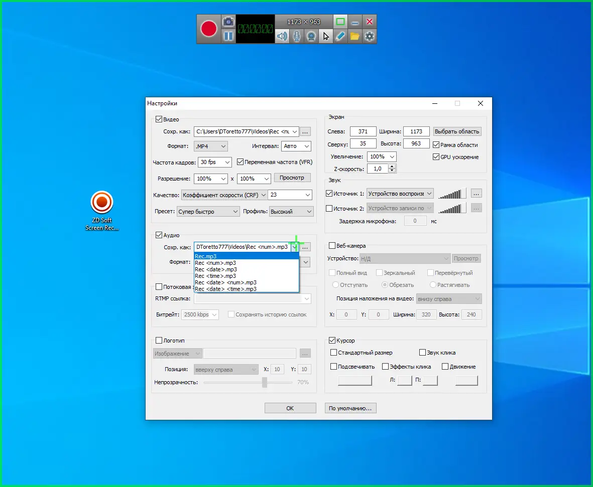 Описание ZD Soft Screen Recorder